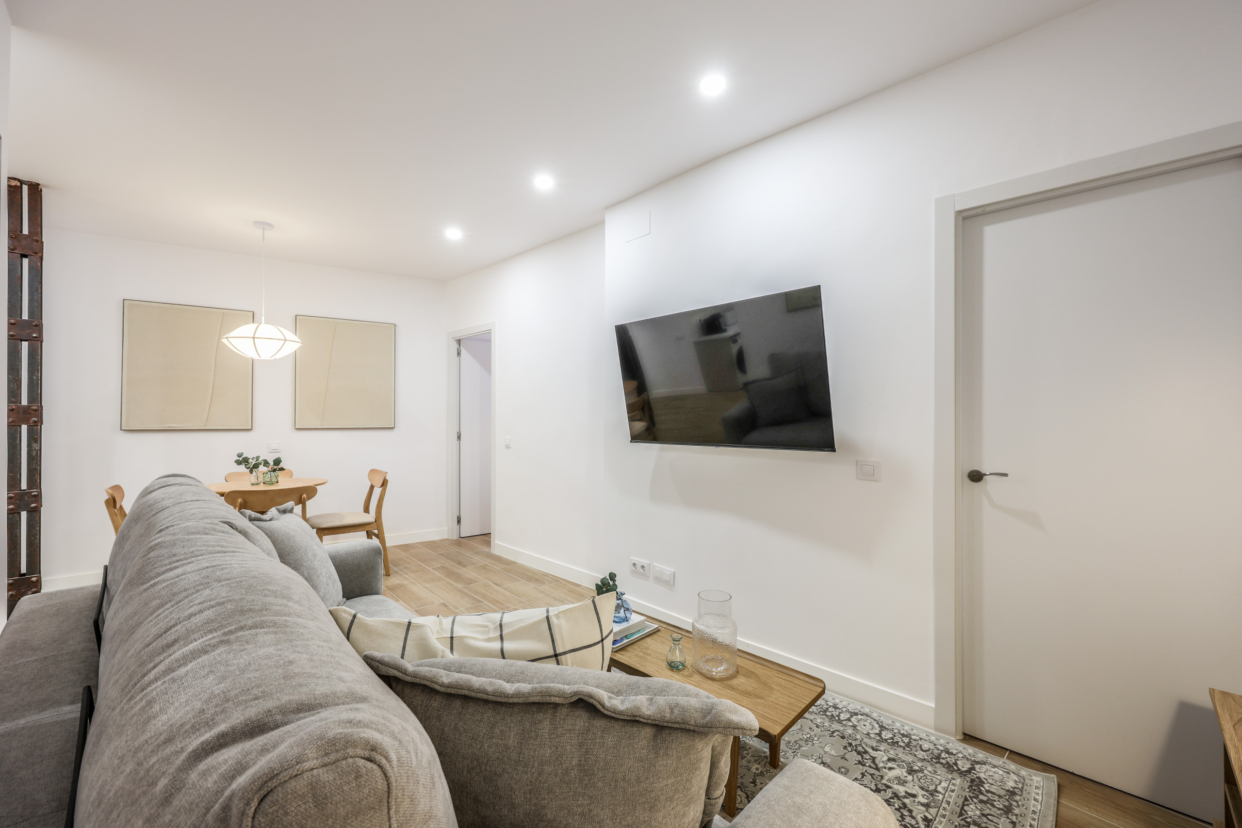 - Salón-comedor: calefacción, sofá, mesa de comedor y TV