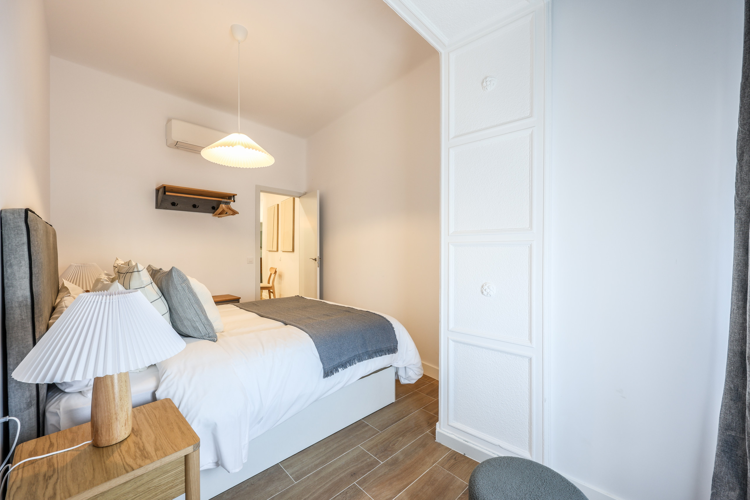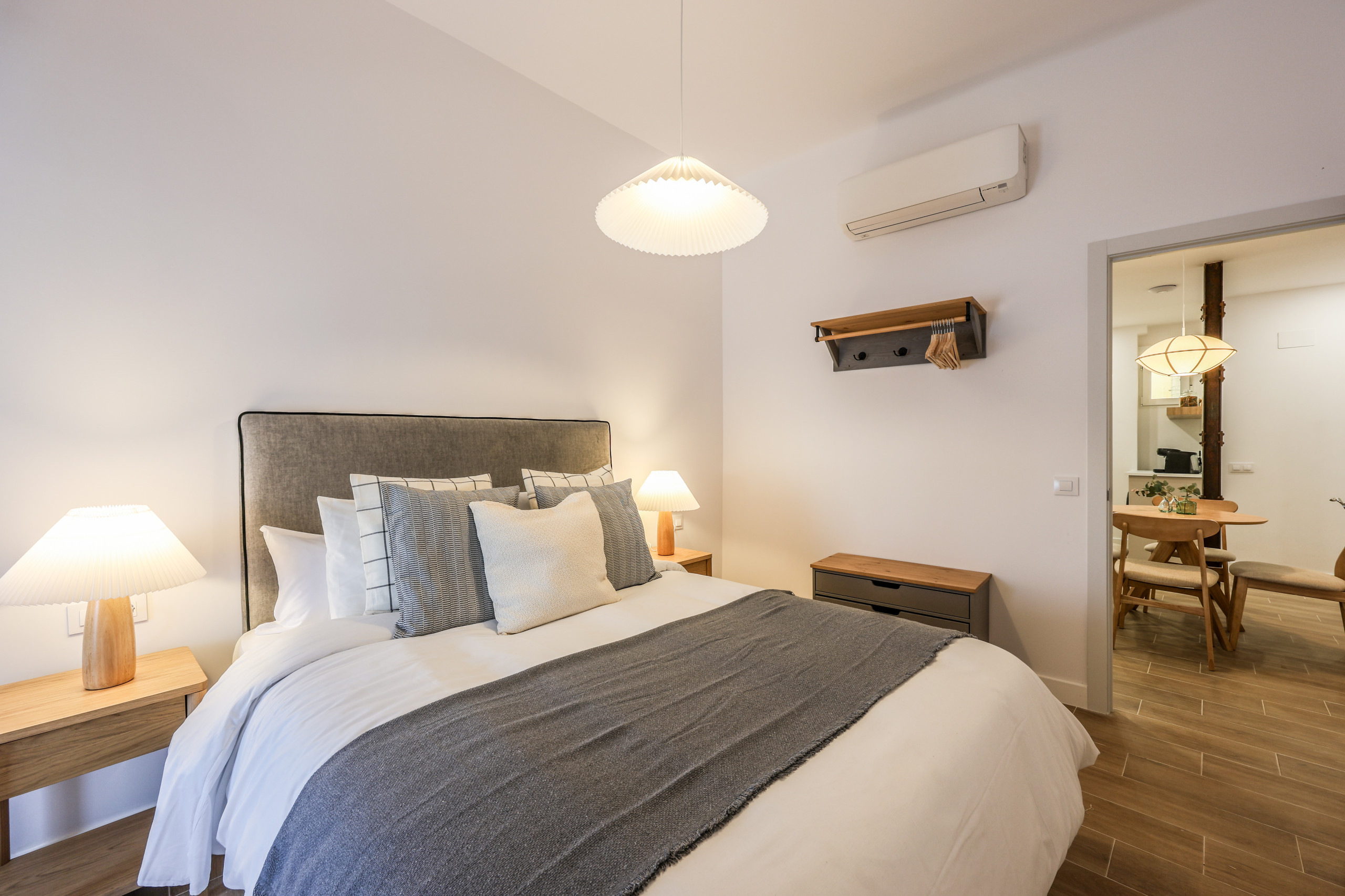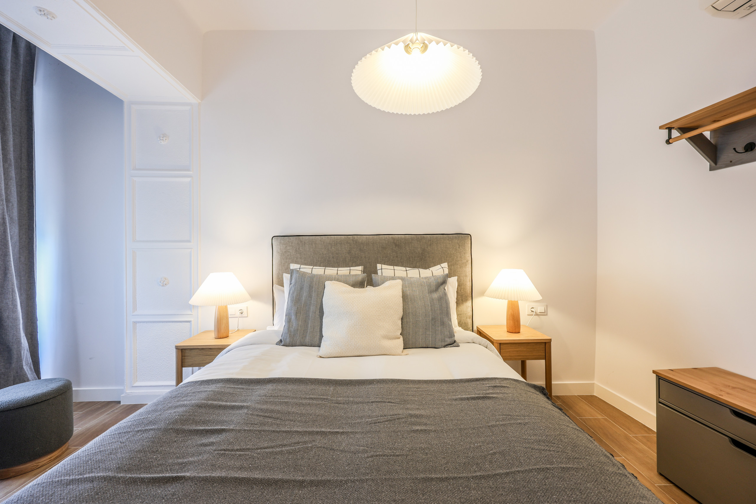 Descubre diseño y confort en Madrid Chueca con este exclusivo alojamiento. Su atmósfera envolvente, paredes impecables y suelos de madera elegante crean un espacio acogedor. El mobiliario moderno se une a piezas únicas, ofreciendo descanso y relajación. La iluminación suave y textiles de calidad elevan tu estancia. Un recuerdo memorable te espera en este rincón de calidez y sofisticación.