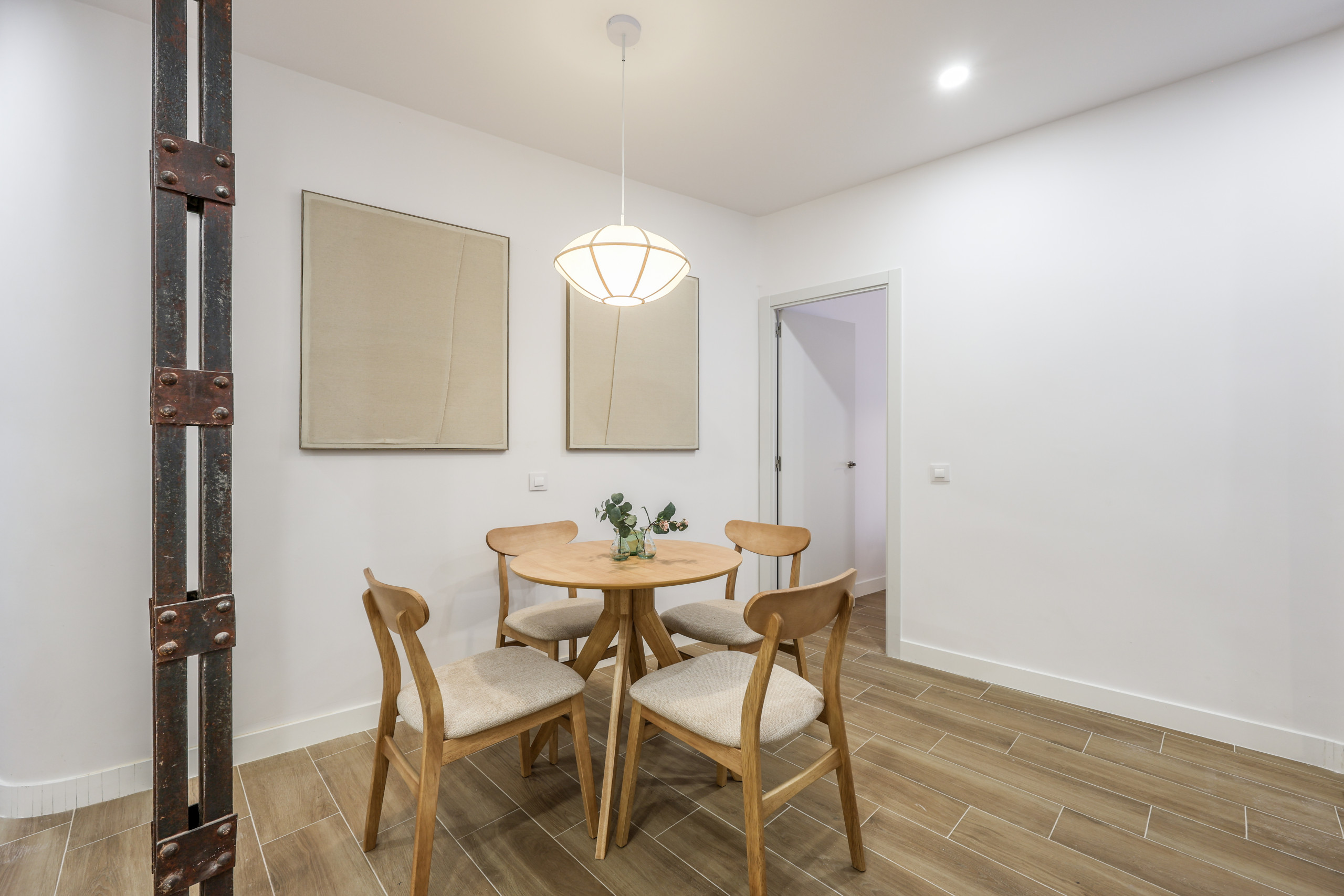 Comedor: Este espacio cuenta con una espectacular mesa redonda de diseño con 4 fantásticas sillas a juego , muy amplia y cómoda para compartir comidas y cenas.