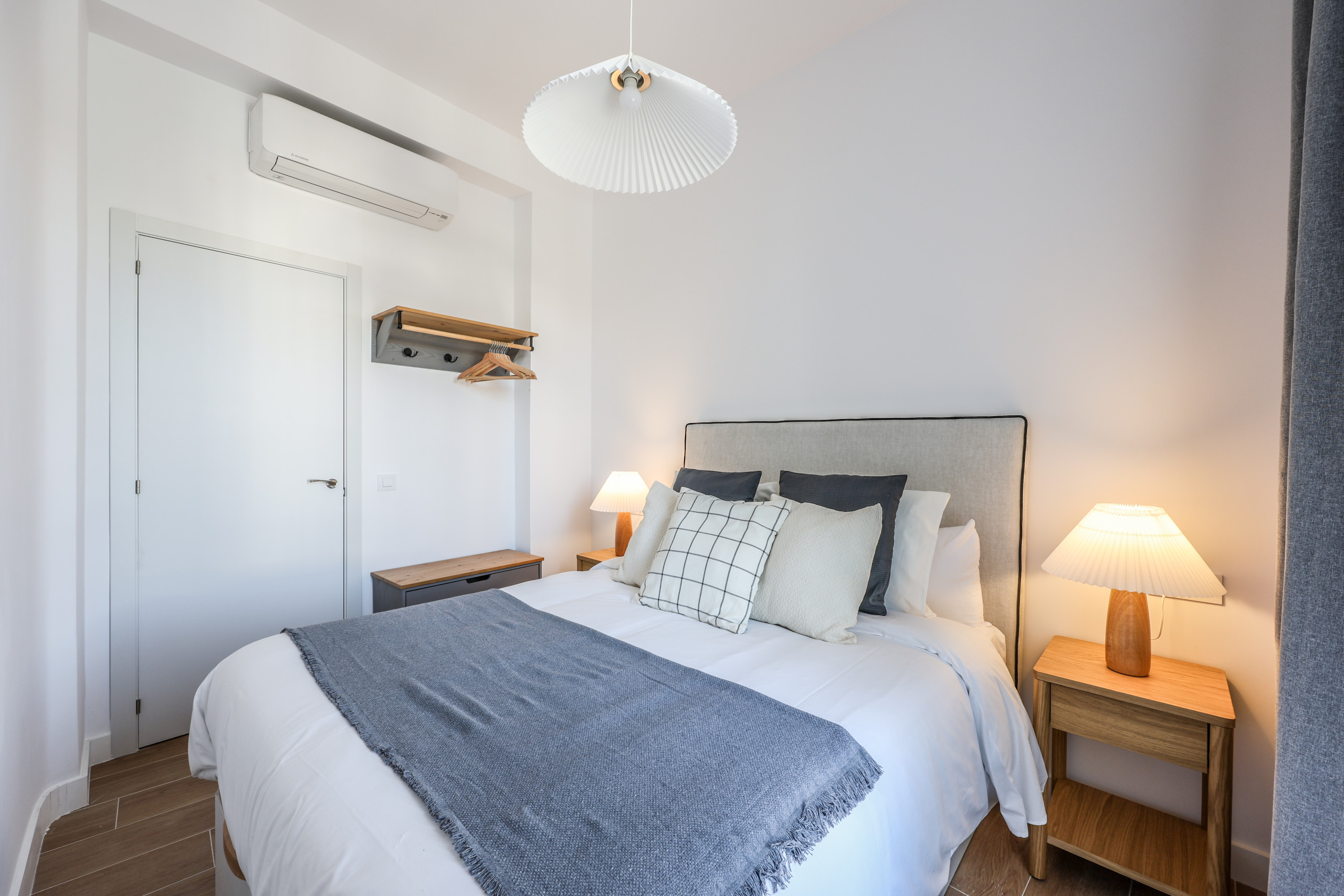 Dormitorio: con una cama doble queen con colchón premiun viscoelástico ,armario, ventanas exteriores con mucha luz , aire acondicionado. y calefacción