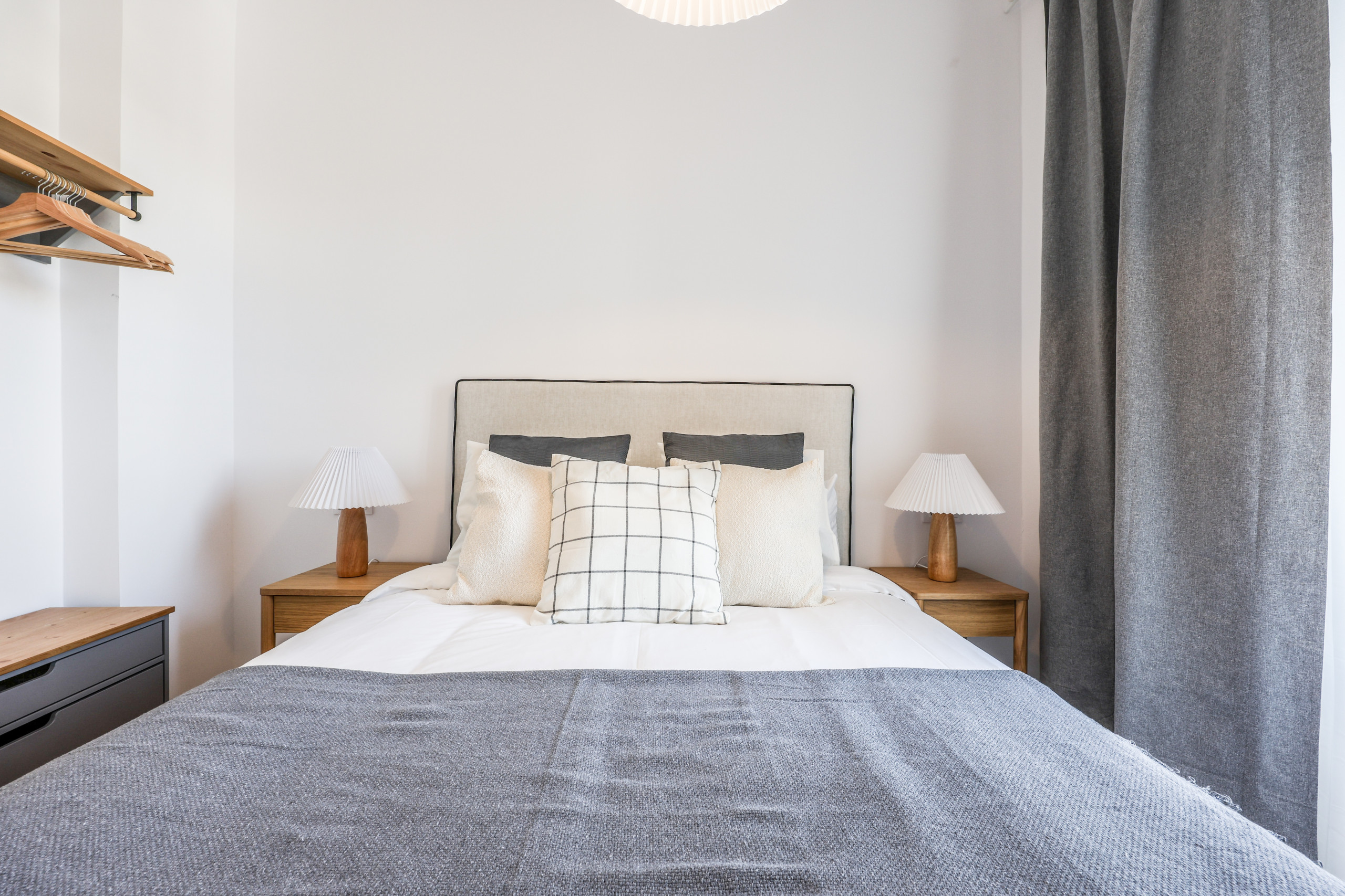- Dormitorio 2: Equipado con Cama Queen, Espacio para guardar la ropa, Perchas, Persianas o cortinas opacas, Calefacción, Aire Acondicionado Servicios básicos, Ropa de cama.