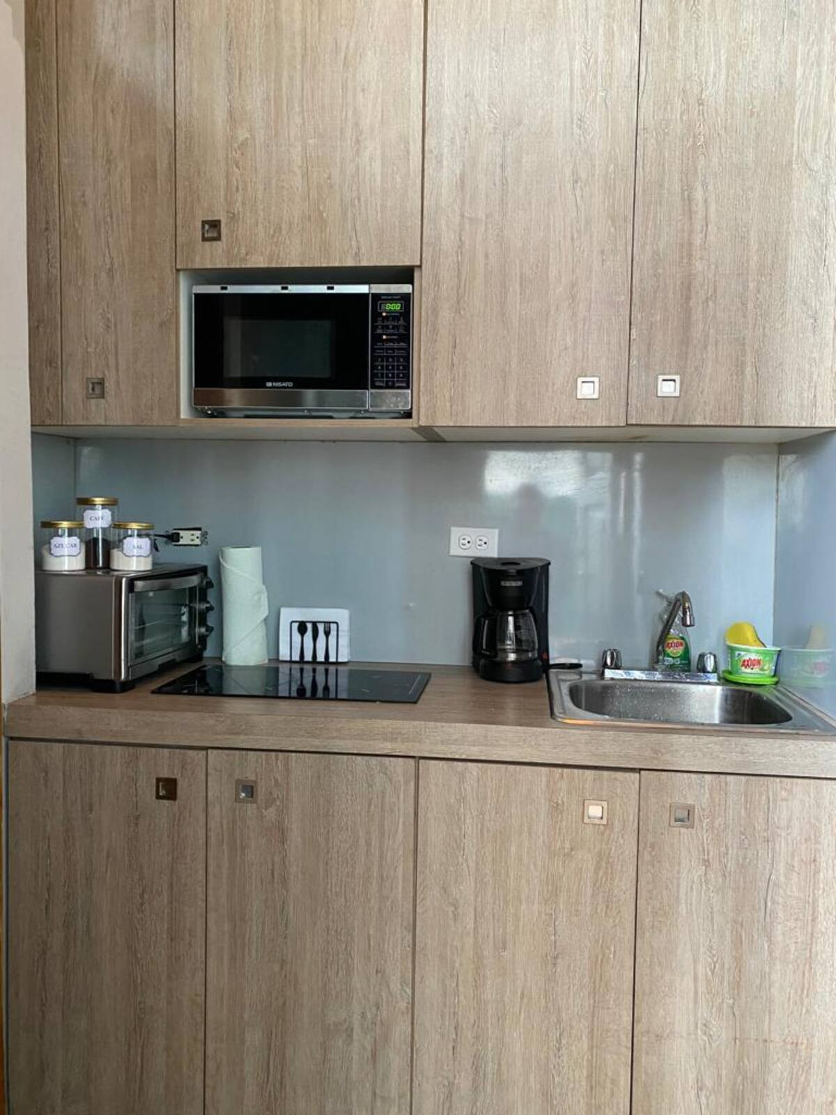 - Cocina americana totalmente equipada: Dispone de cafetera, microondas, refrigerador, licuadora, tostadora, copas de vino, hervidor de agua, platos, cubiertos, utensilios básicos de cocina, zona de comedor, estufa, horno, extractor, además de insumos esenciales como café, sal, azúcar, té y aceite.