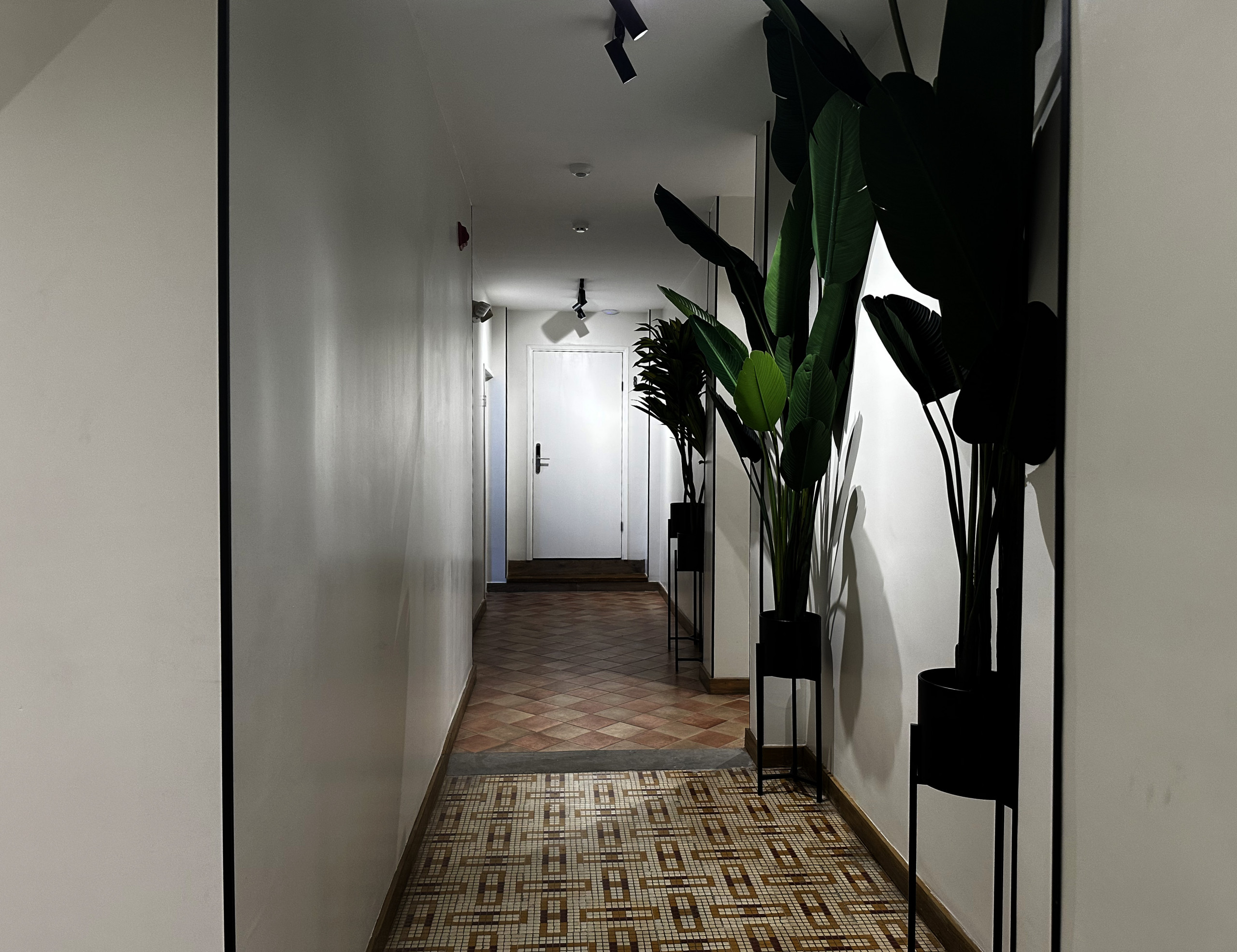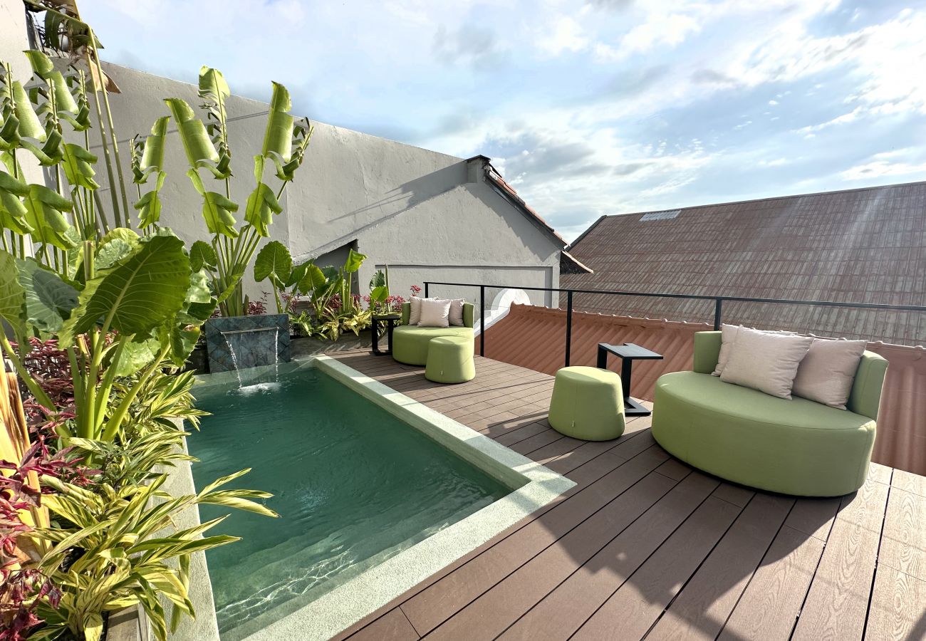 - Rooftop con Piscina Compartida: Espacio relajante al aire libre con vegetación, mobiliario y una pequeña piscina ideal para refrescarse y disfrutar de la vista urbana del Casco Antiguo.