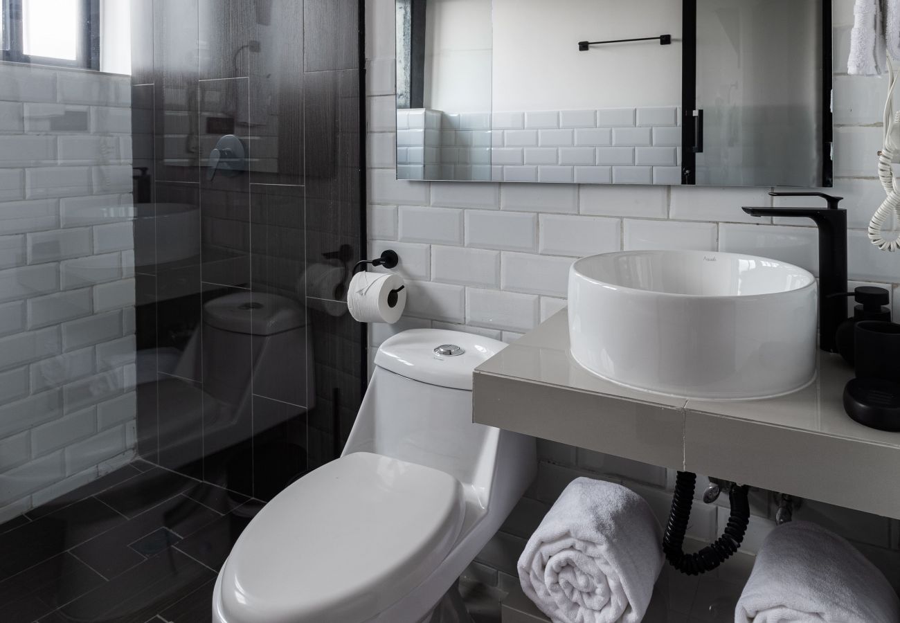 - Baño 1: Ducha con agua caliente, aire acondicionado, shampoo, jabón corporal, toallas y secador de pelo.