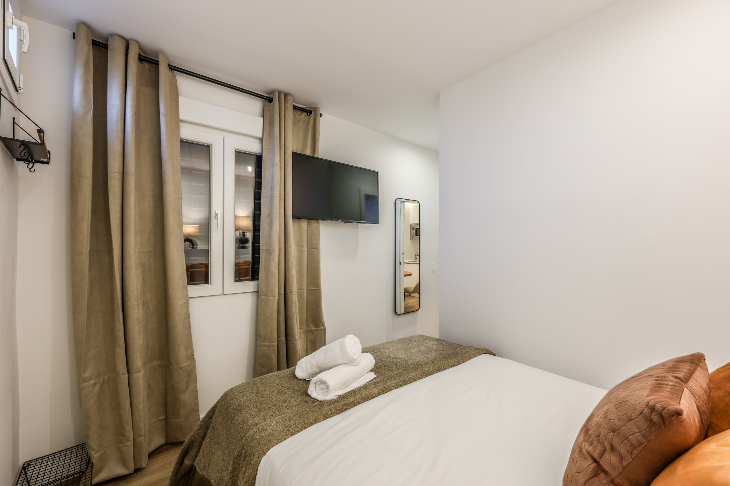 Además, dispondrás de un cuarto de baño de diseño totalmente equipado (ducha, lavabo, lavadora...) y en una estancia separada un imponente dormitorio de matrimonio con una cama doble viscoelástica para poder descansar después de vivir la ciudad al máximo.