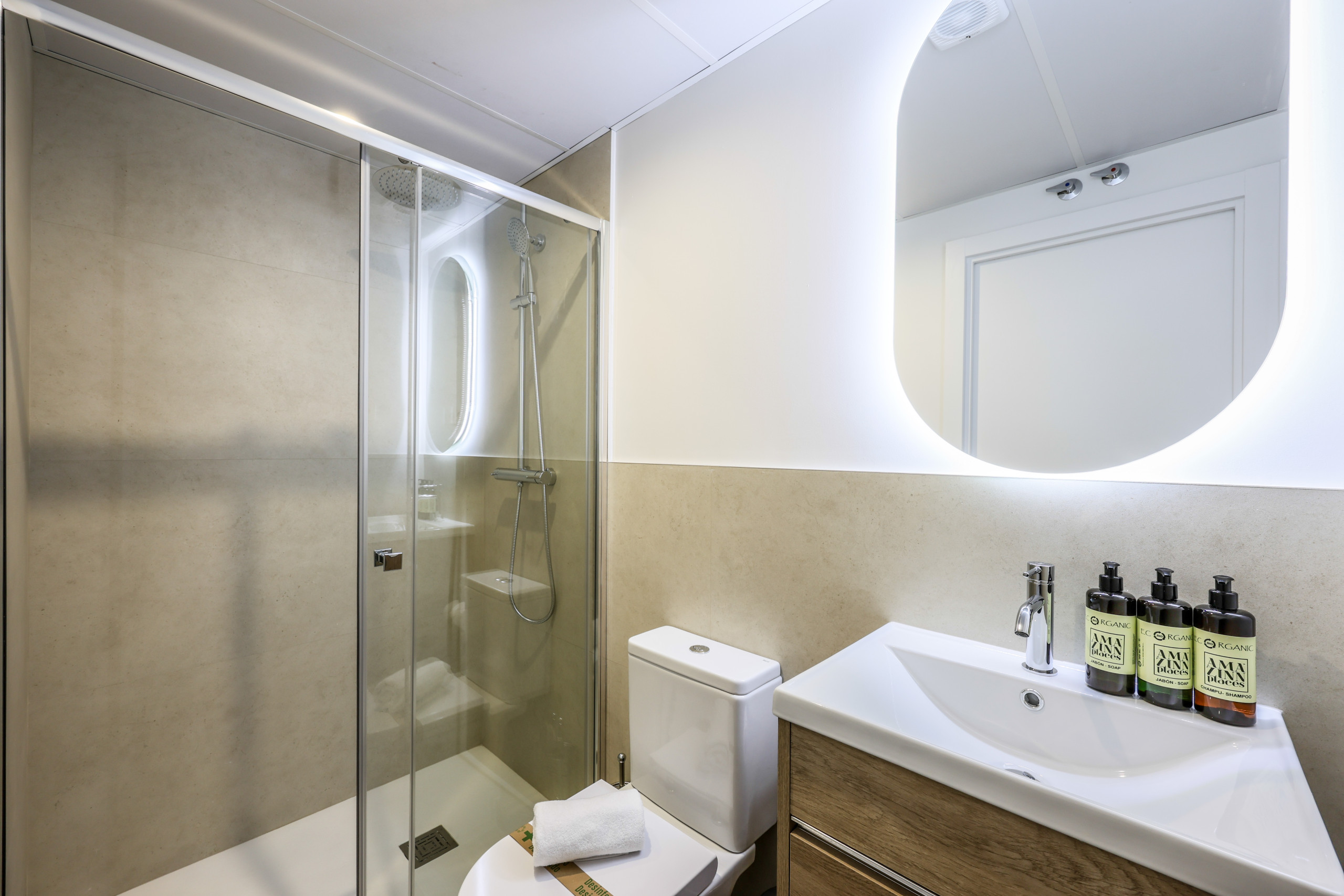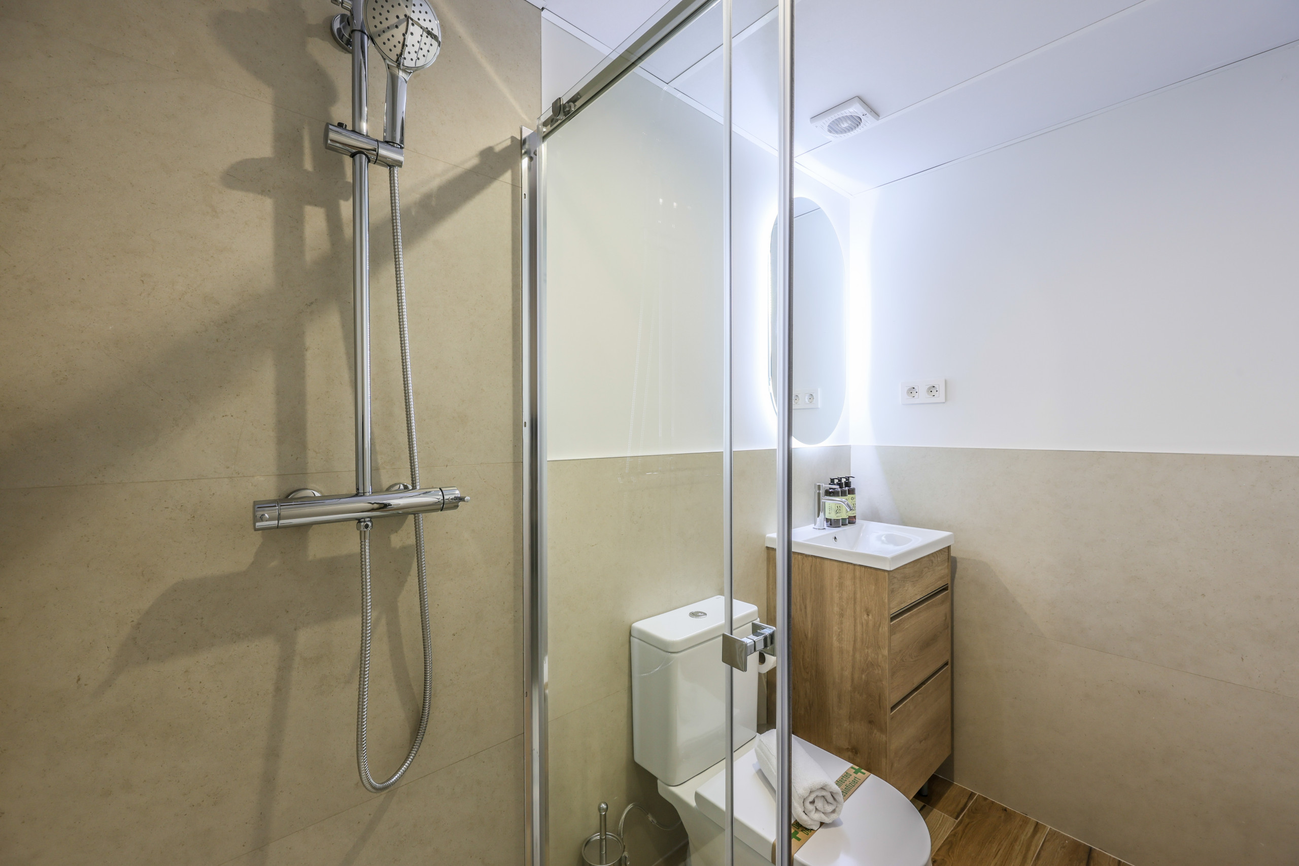 Baño- de diseño y muy luminoso , con calefactor y secador de toallas, equipado con todo para una estancia perfecta.
