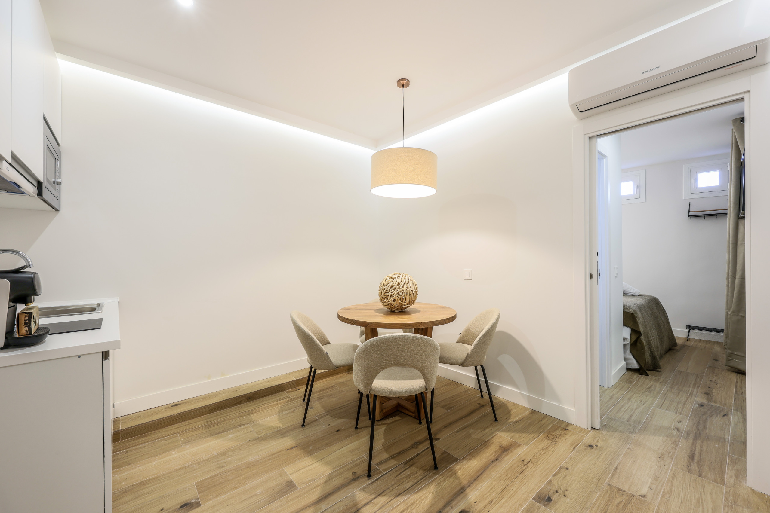 Sitio muy céntrico, en una finca tranquila y silenciosa, con muebles y camas nuevas de gran calidad y sistema de calefacción y AC centralizado para un óptimo descanso.
