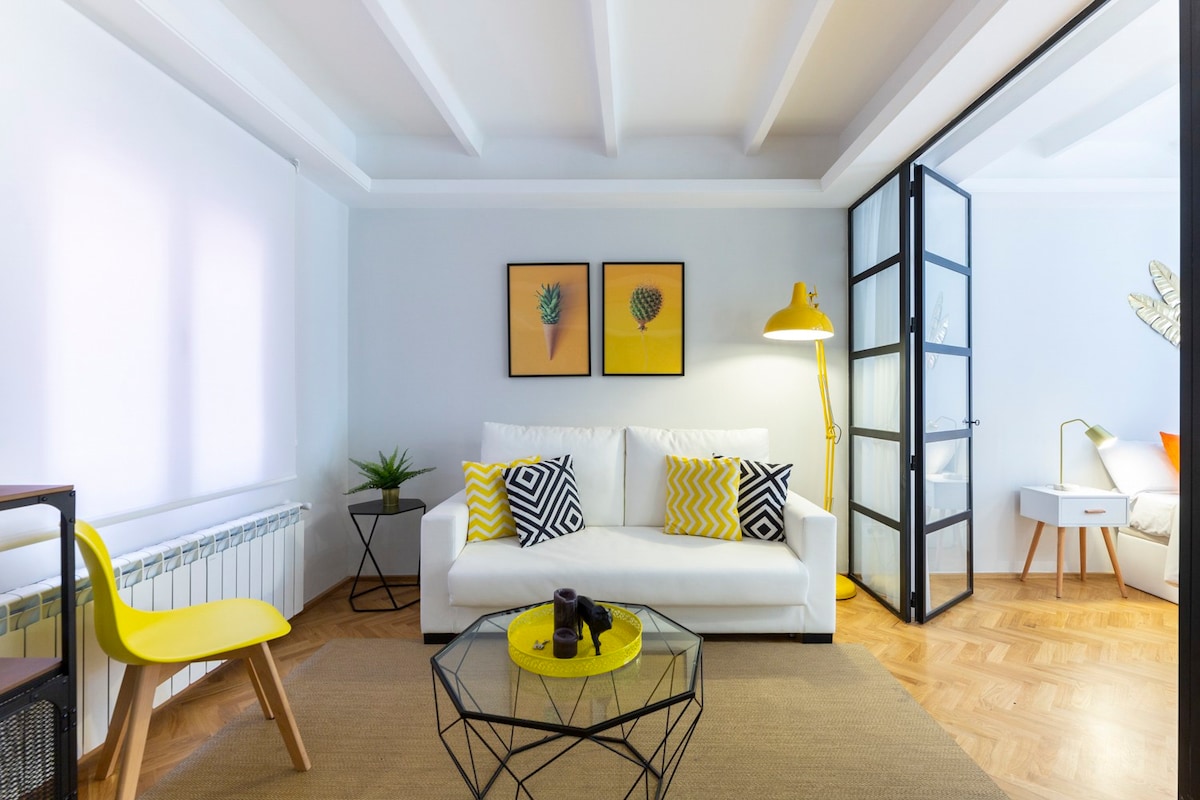 Sitio muy céntrico, en una finca tranquila y silenciosa, con muebles y camas nuevas de gran calidad y sistema de calefacción y AC centralizado para un óptimo descanso.