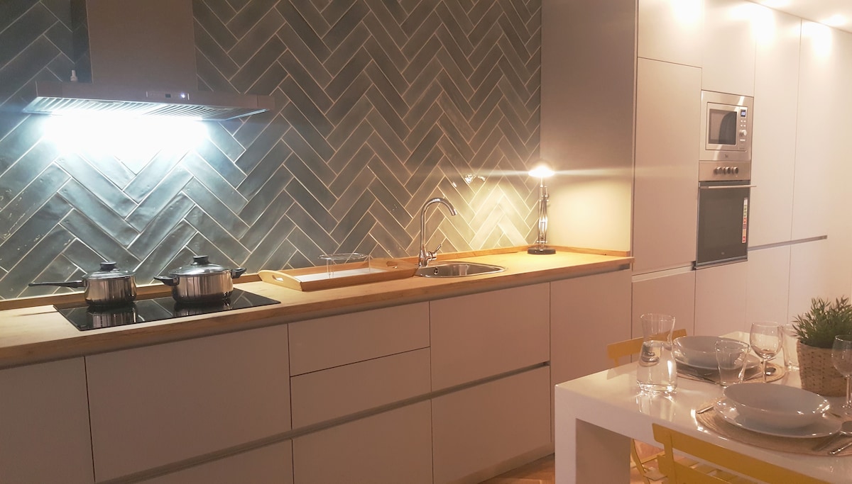 -Cocina: moderna y espaciosa, equipada con todo lo necesario para cocinar y preparar todo lo que desees durante la estancia. Todos los electrodomésticos son de alta gama por lo que utilizar la cocina será todo un lujo (horno, nevera, microondas, cafetera, tostadora y lavavajillas).
