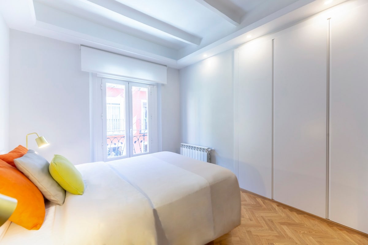 Cuenta con grandes armarios empotrados y una cama doble con colchón viscoelástico de 1,35cm muy cómodo, ideal para descansar después de un día de turismo por la ciudad.