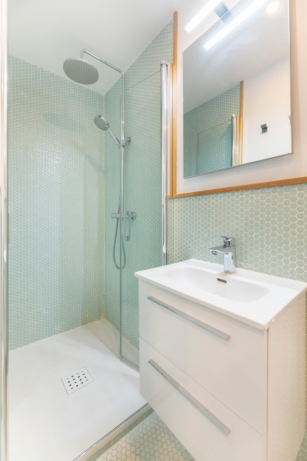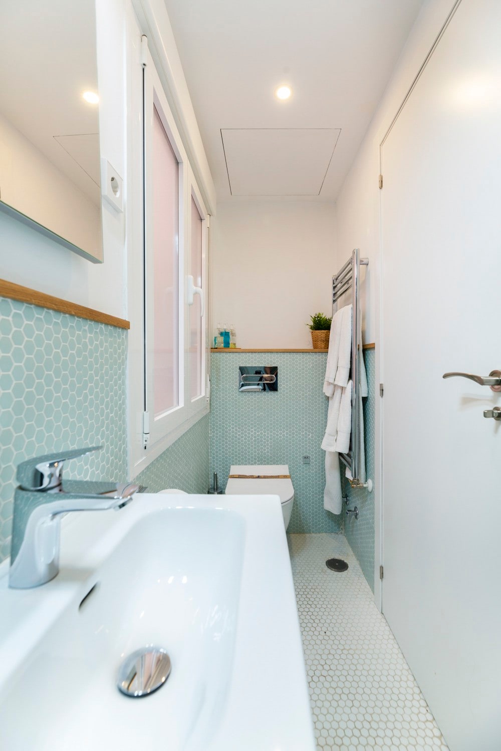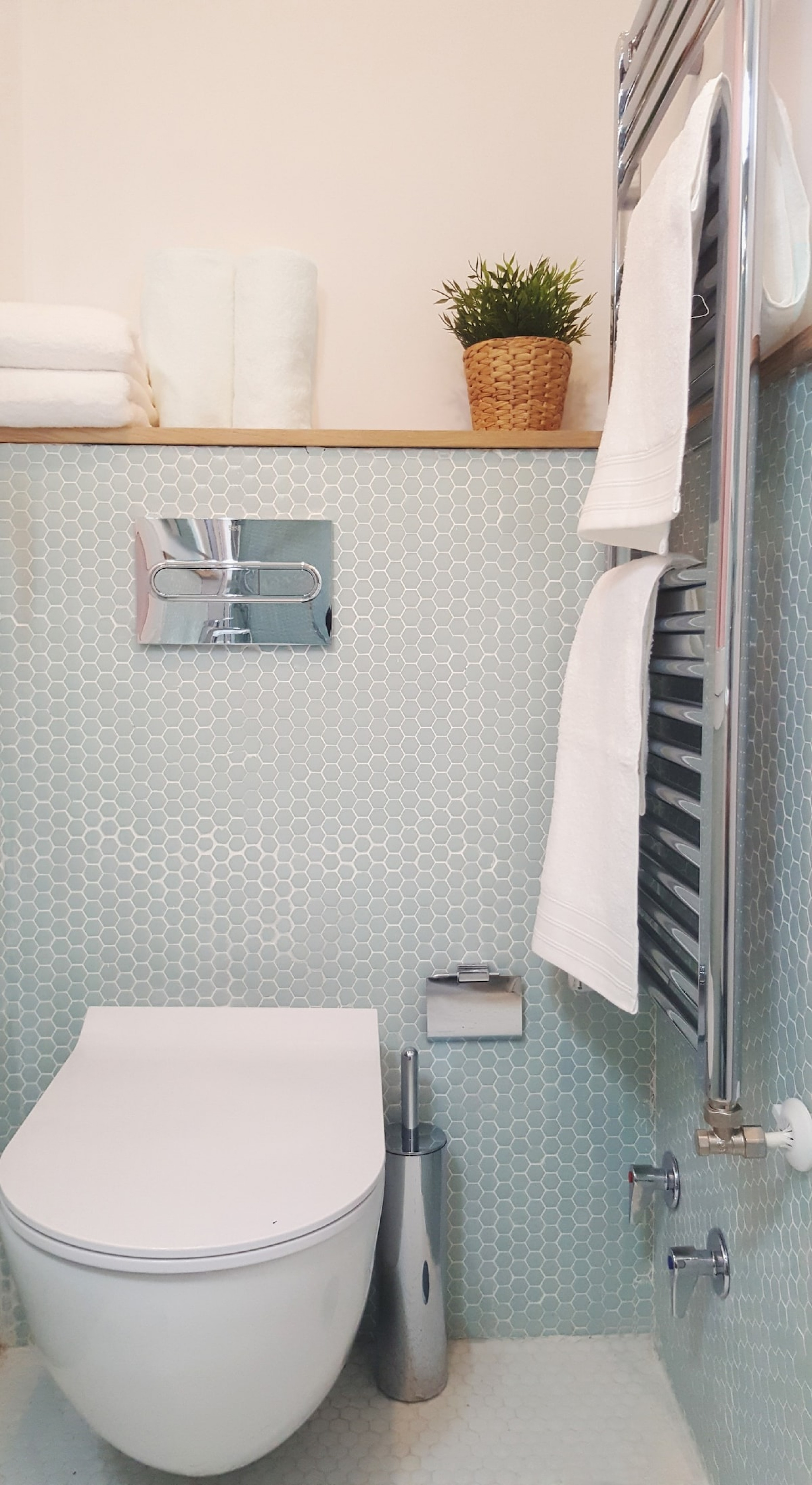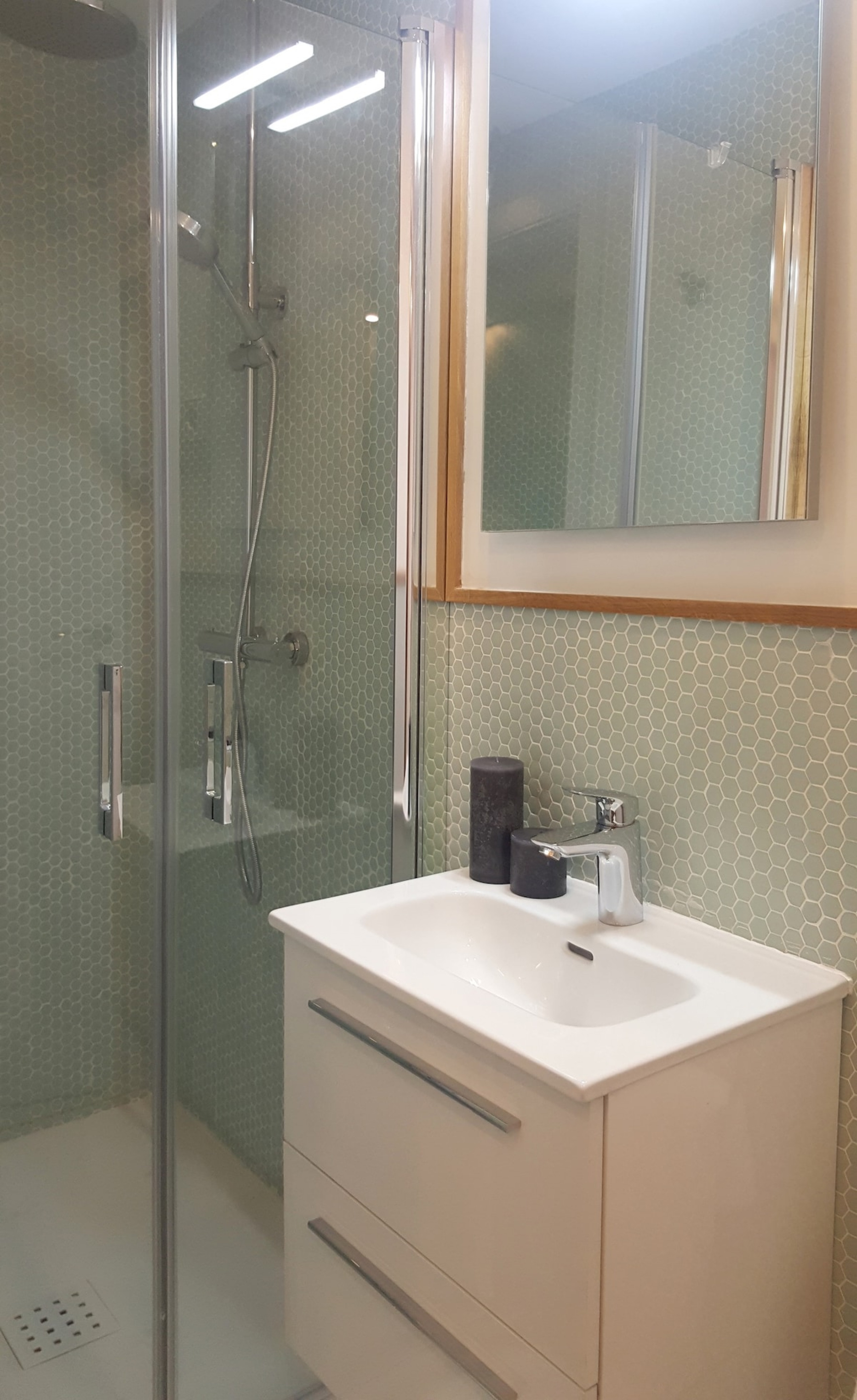 Baño- de diseño y muy luminoso , con calefactor y secador de toallas, equipado con todo para una estancia perfecta.