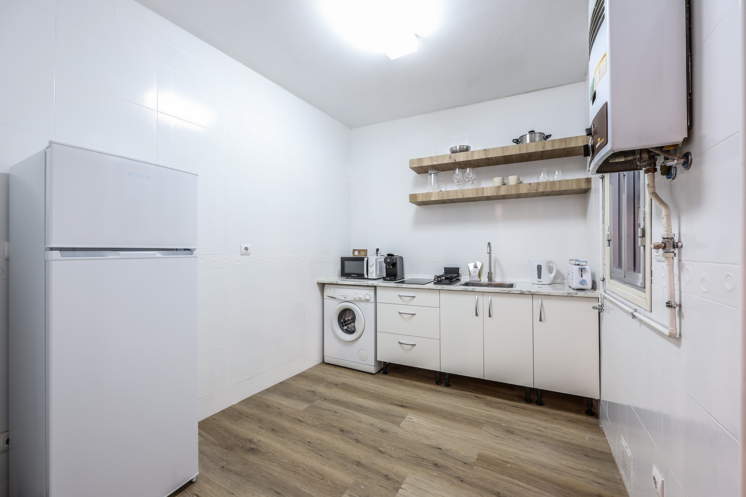 La cocina está totalmente equipada con una nevera, congelador, microondas, utensilios, vajilla y cubertería así como cafetera y tostadora. También dispones de una lavadora y plancha.