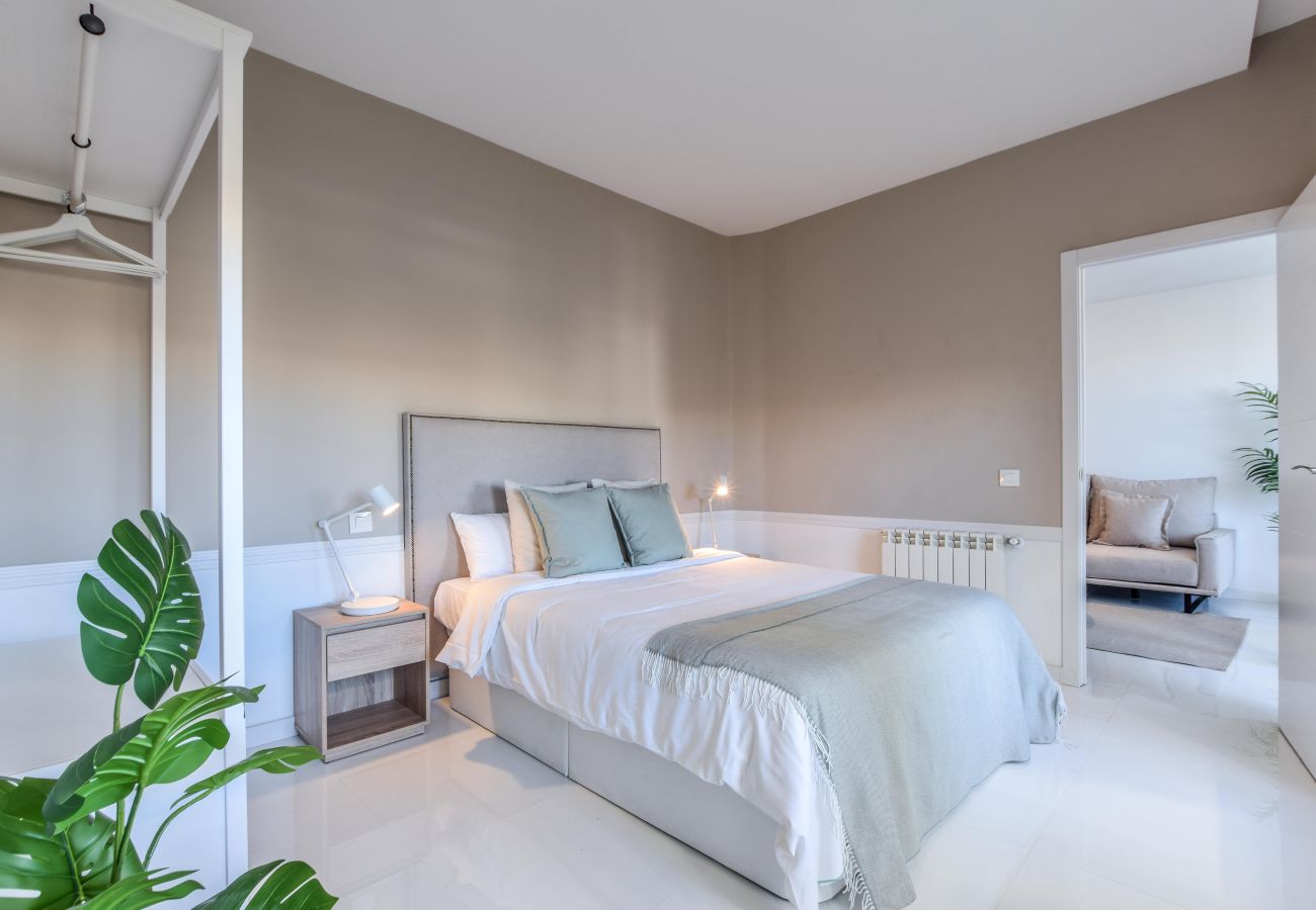 - Salón: totalmente reformado con muebles de diseño y cientos de detalles. Se compone de un cómodo sofá, alfombra, lámparas y Smart Tv e internet de alta velocidad.