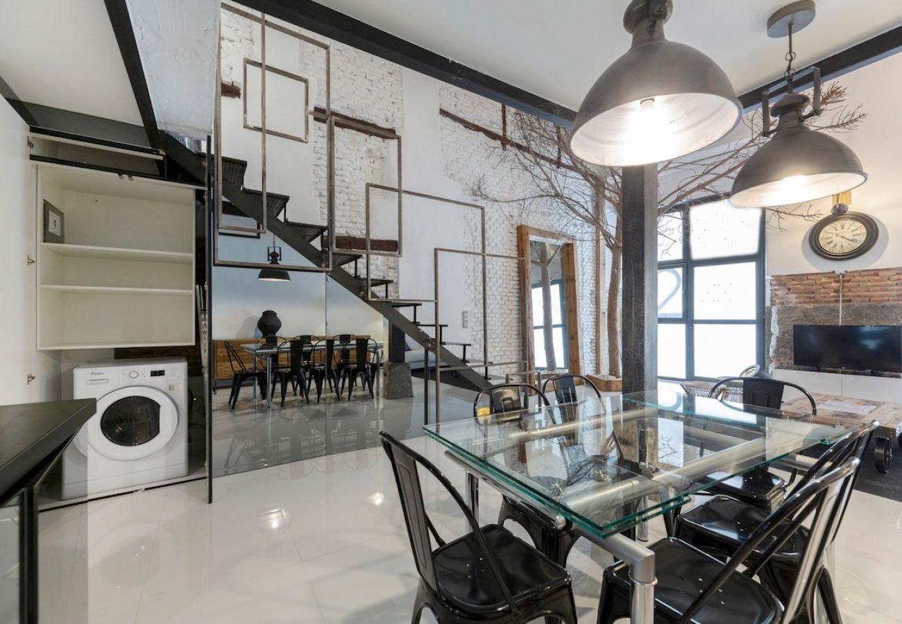 Es un espacio de dos alturas pensado para 7 personas, totalmente equipado y decorado con un exquisito aire industrial a la vez que confortable.