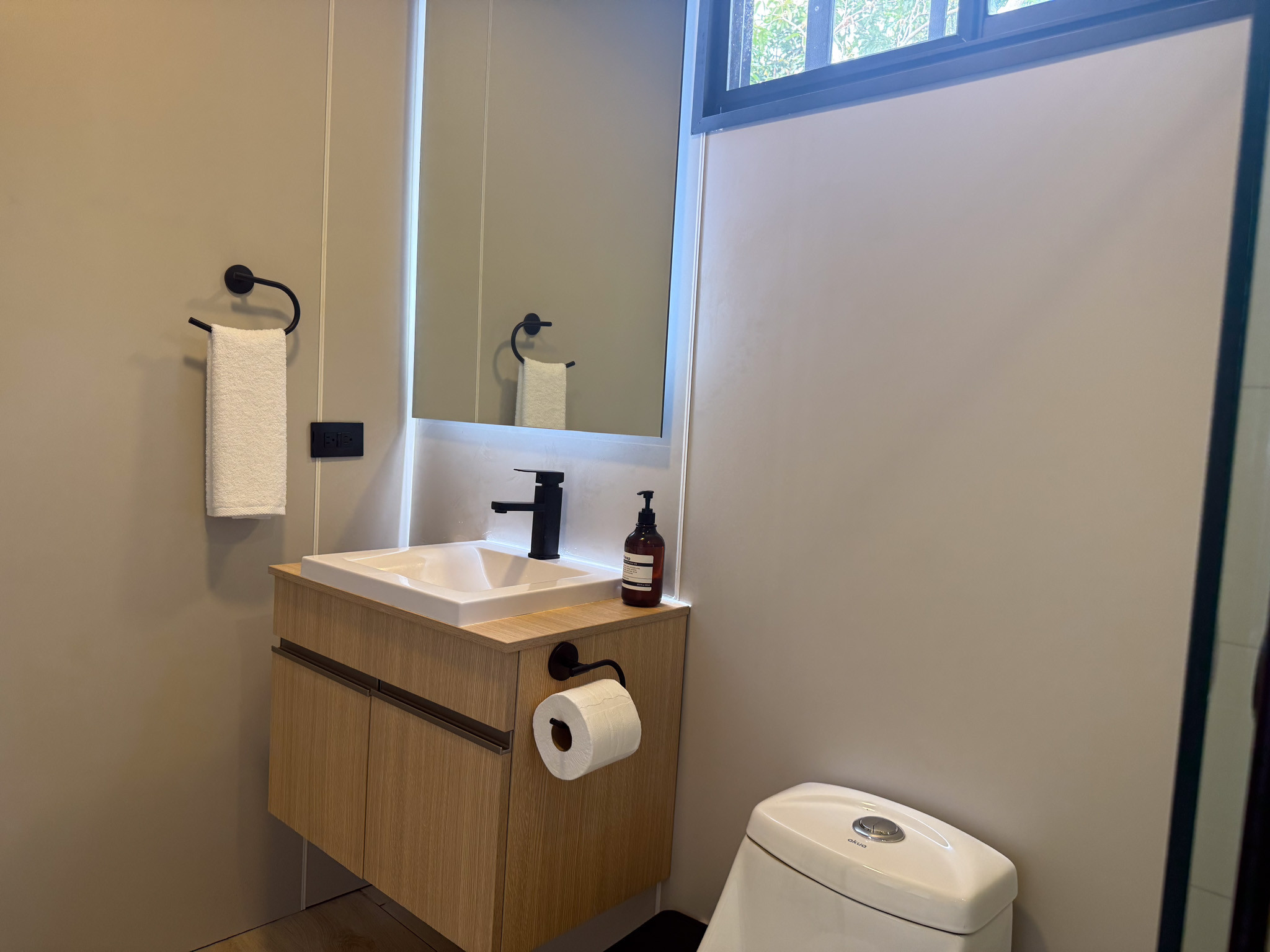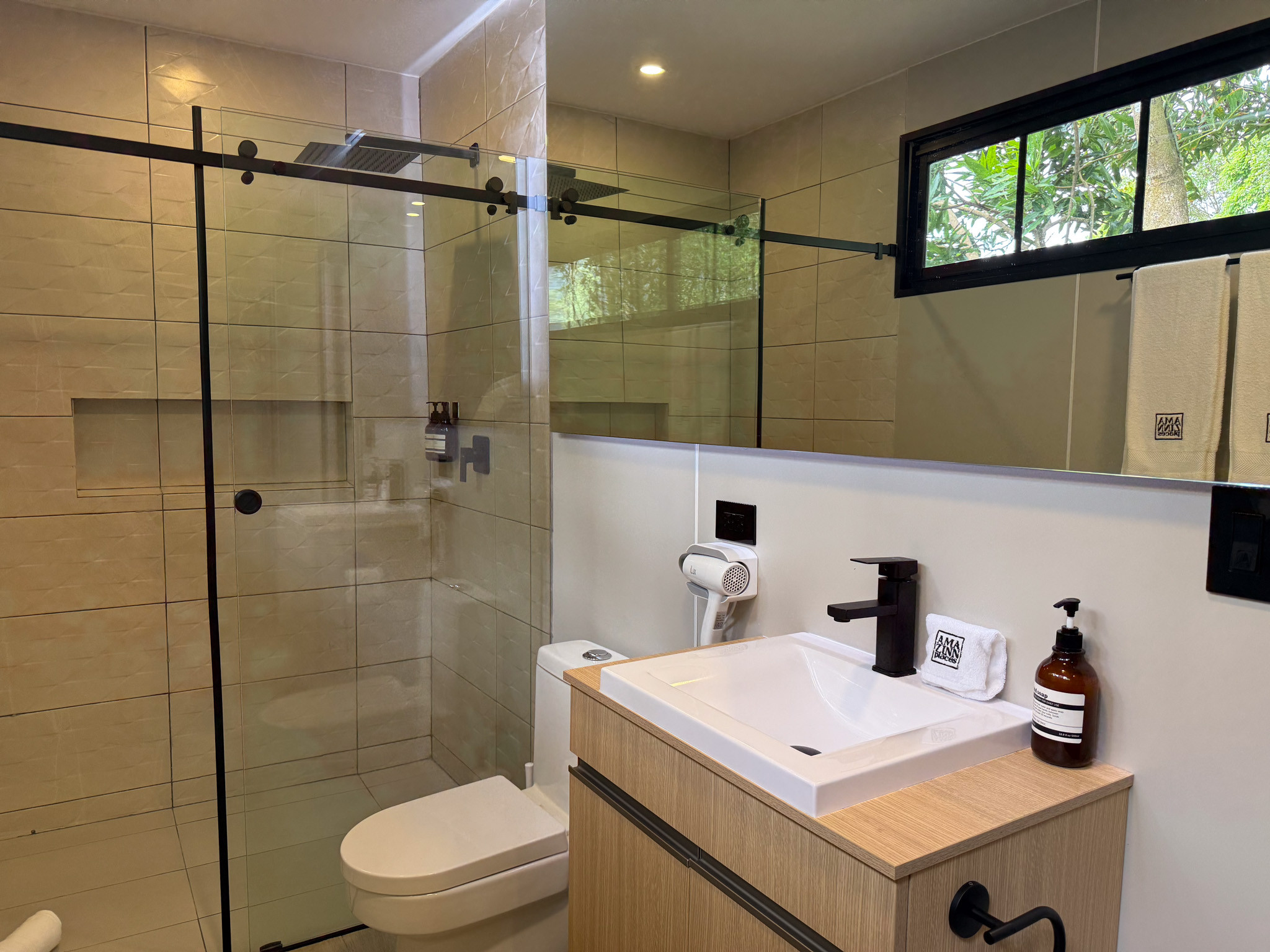 - Baños (2 en suite): Ambos baños incluyen ducha con agua caliente, champú, gel de ducha, secador de cabello, toallas incluidas y ventana para ventilación natural.