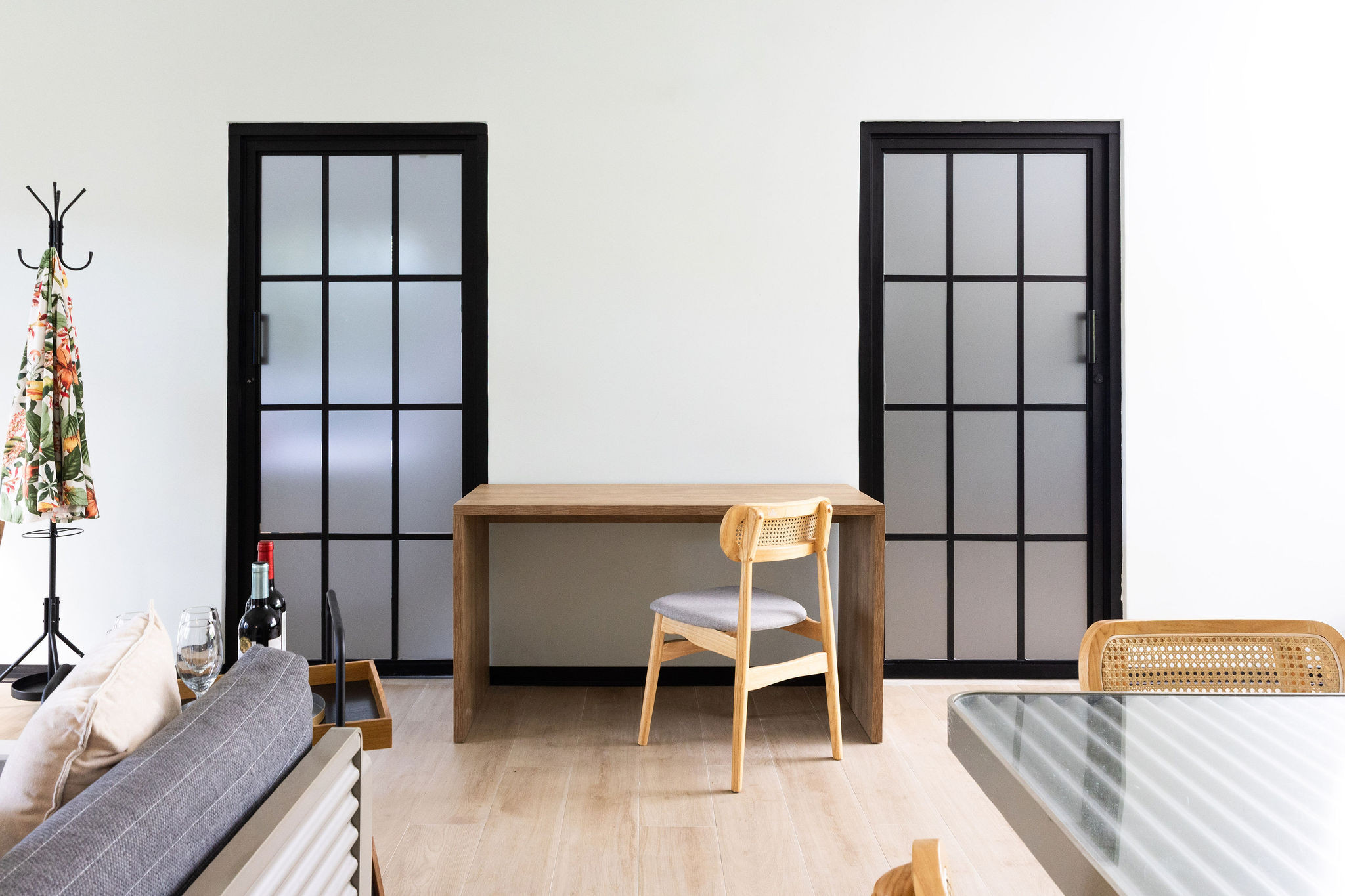 - Sala de estar: Espacio cómodo con sofá y mesa de comedor. La sala no cuenta con aire acondicionado ni TV.