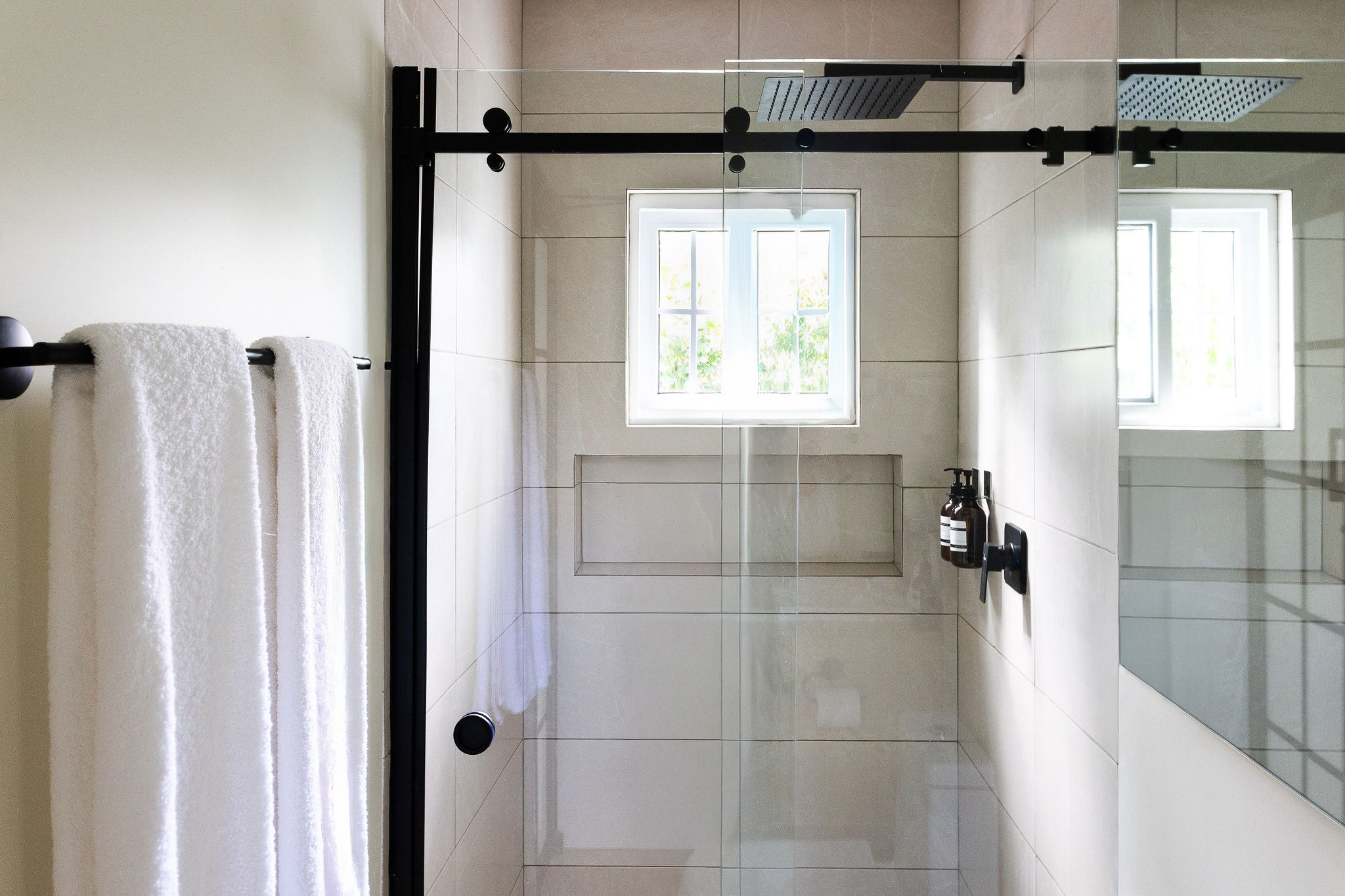 - Baños (2 en suite): Ambos baños incluyen ducha con agua caliente, champú, gel de ducha, secador de cabello, toallas incluidas y ventana para ventilación natural.