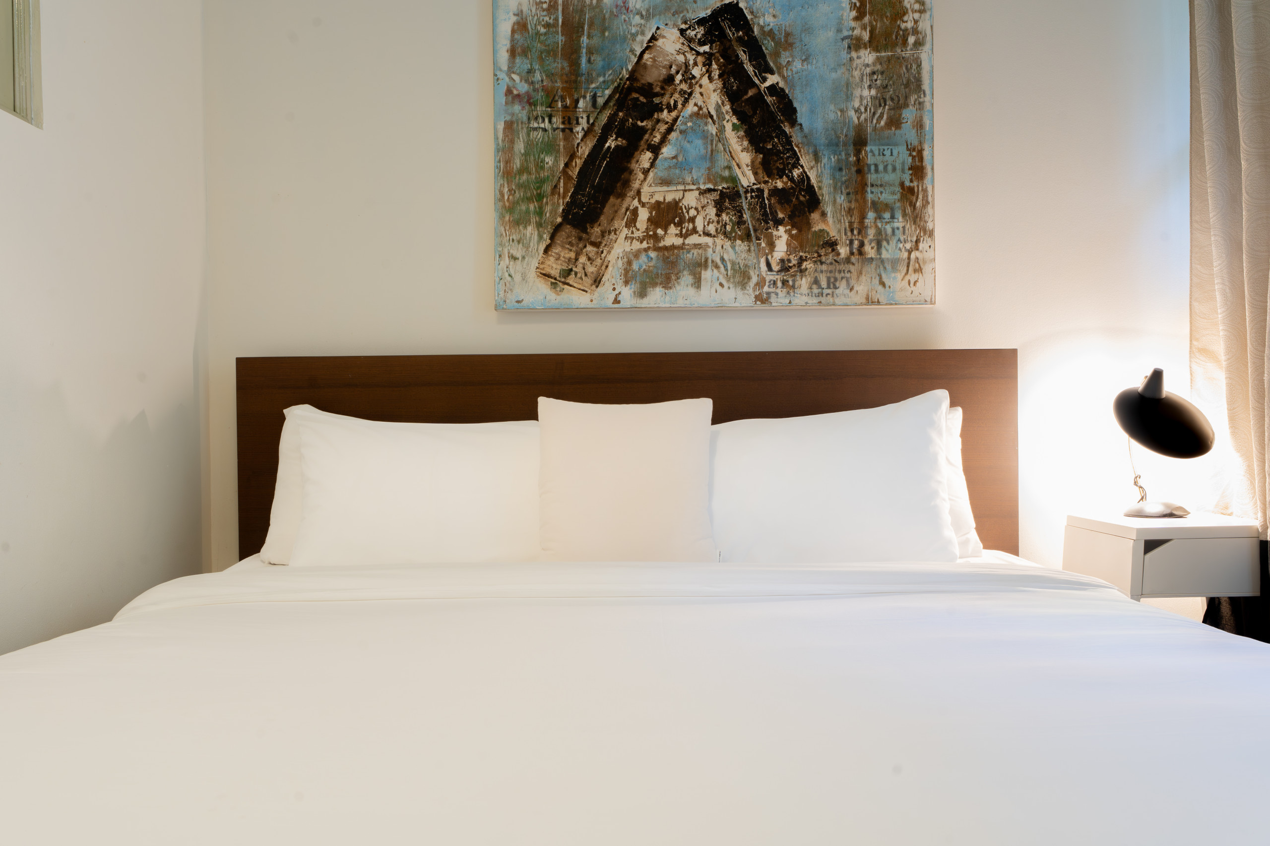 - Dormitorio: Elegante y confortable, con una cama King, aire acondicionado, cortinas blackout, guardarropa, perchas, ropa de cama, lámpara de noche, plancha, tabla de planchar y TV.