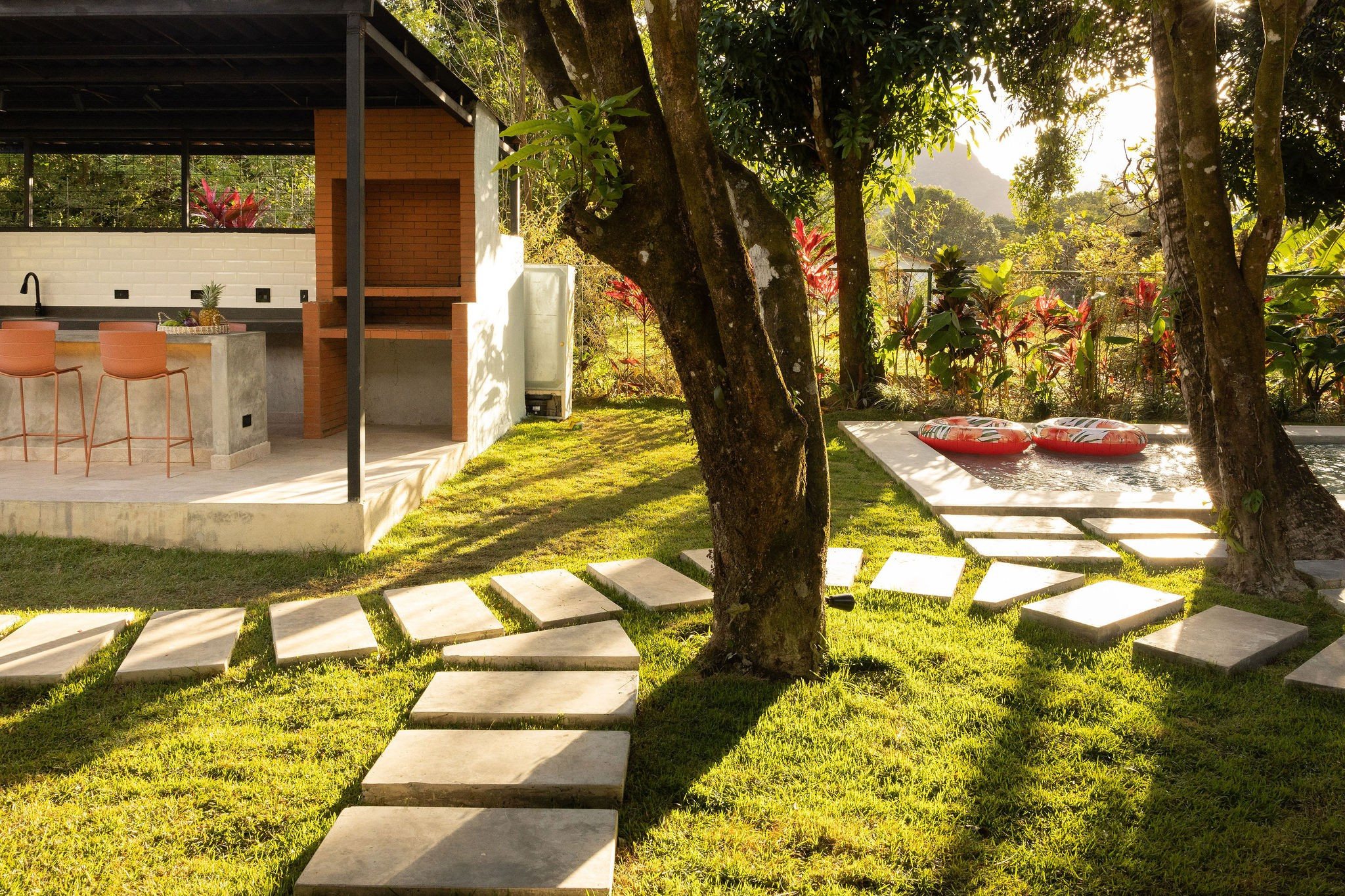 - Zona de barbacoa con utensilios.