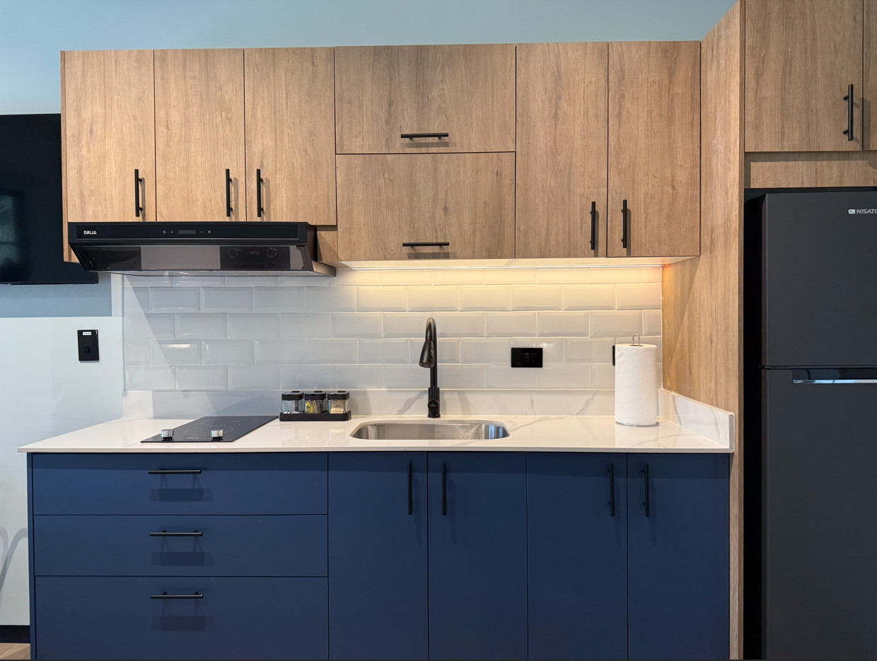 - Dormitorio: Estudio amplio y confortable con 2 camas Queen, ropa de cama incluida, aire acondicionado, ventilador de techo y persianas o cortinas opacas para un descanso óptimo. Dispone de escritorio con silla, zona de trabajo con buena iluminación, TV Smart y wifi de alta velocidad. Incluye armario o espacio para guardar ropa con perchas, plancha, almohadas y mantas adicionales. Cuenta con detectores de humo y monóxido de carbono, además de seguros en ventanas.