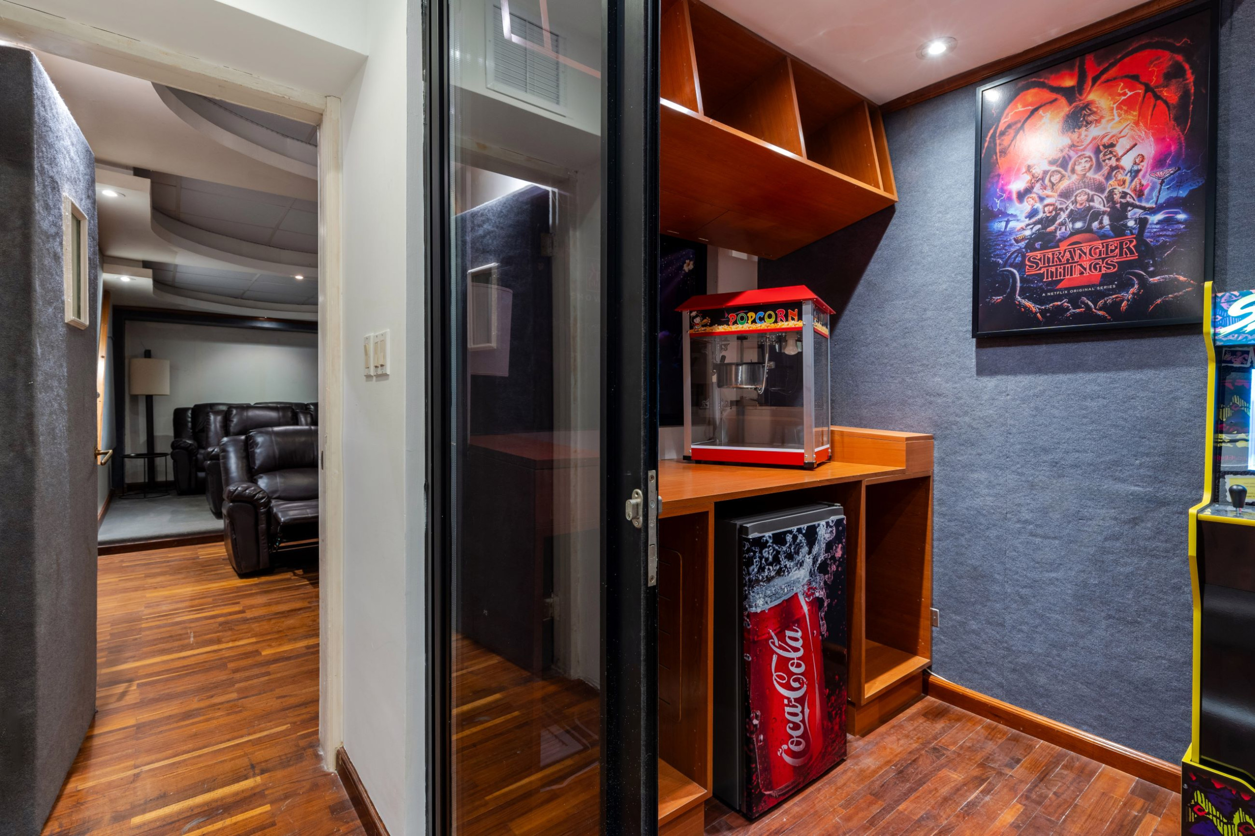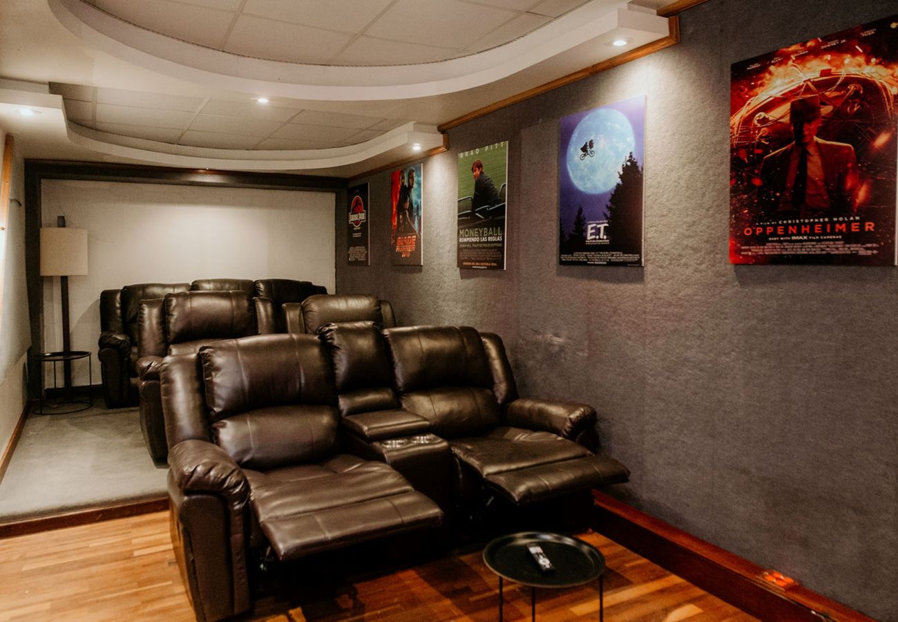 - Sala de cine: siete sillones y máquina de palomitas.