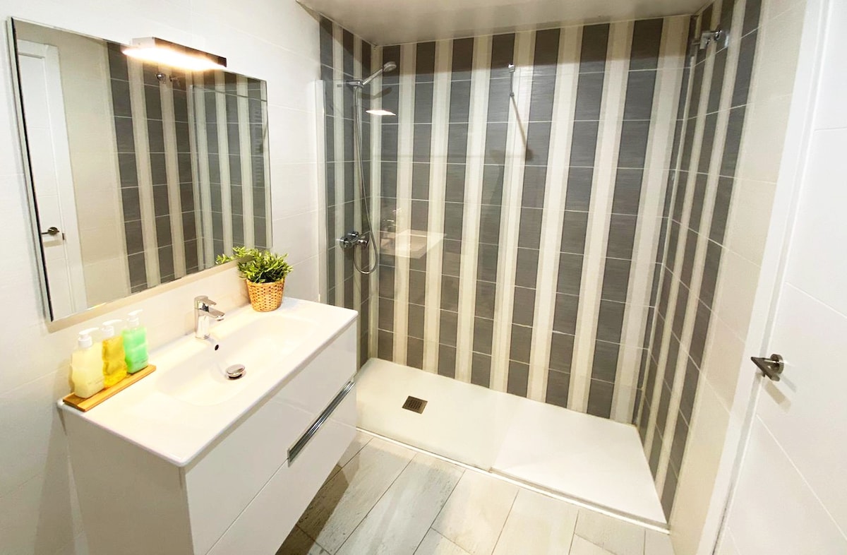 You will enjoy an incredible bathroom fully equipped with a shower tray, two sinks, toilet, shampoo and gel, toilet paper, hair dryer, pack of towels, etc.