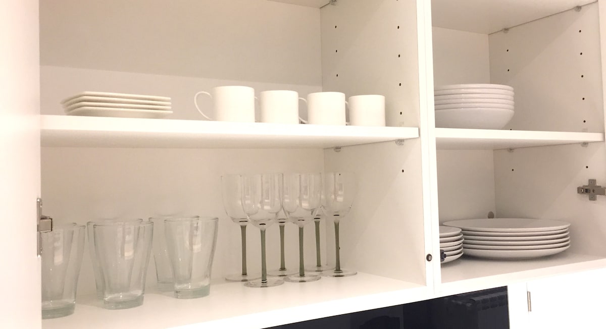 The kitchen is fully equipped with everything you need to prepare whatever you need. You will have: microwave, fridge, freezer, ceramic hob, toaster, Nespresso coffee machine, utensils (plates, cutlery, pans, pots, etc).