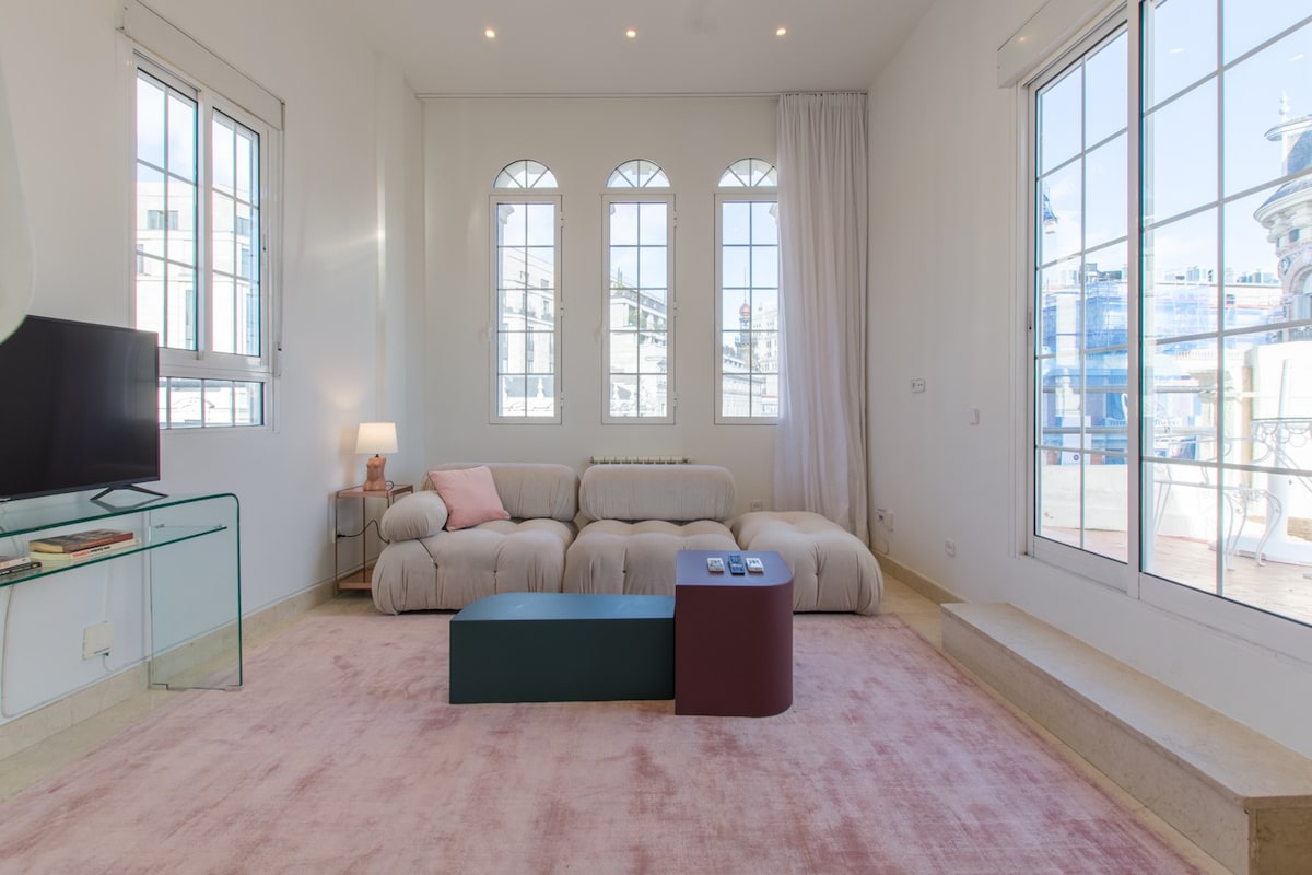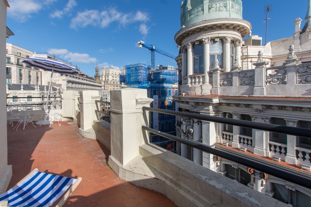 Beautiful penthouse with two terraces in the heart of Madrid, in the Plaza de Canalejas next to the Four Seasons hotel, one of the best areas of the city. It has a large bedroom with a dressing room and a loft room. A unique space with impressive views of the square from its large terraces. Very bright and with impeccable decoration. Fully equipped to have a perfect stay, ideal to get to know and enjoy the city while enjoying incredible accommodation.