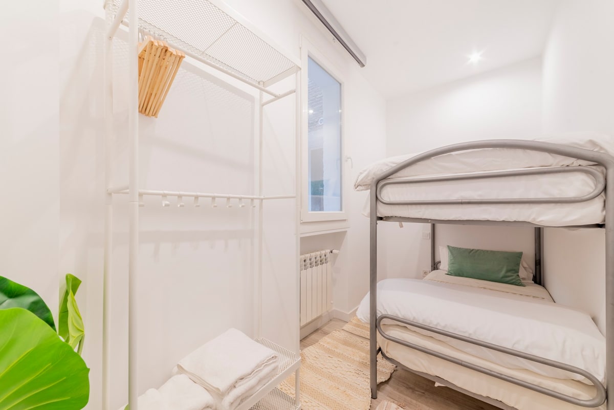 Completely design three-bedroom apartment, recently renovated and re-decorated, you can enjoy one of the best areas of central Madrid. Two of the rooms have 0.90 cm bunk beds, two of them with a balcony facing the street, being incredibly bright, the third room has a 1.35 cm bed. Prepared for a totally comfortable stay. All beds have a pack of sheets so you don't have to worry about a thing.