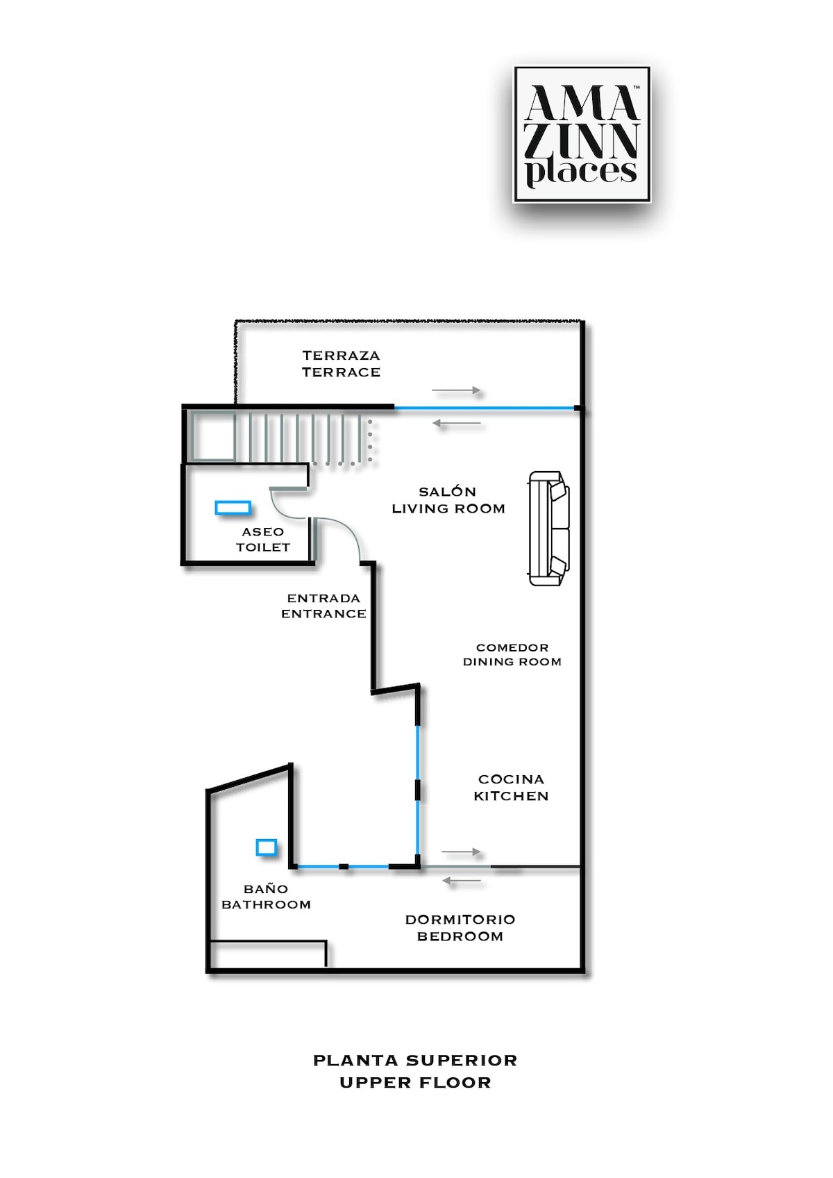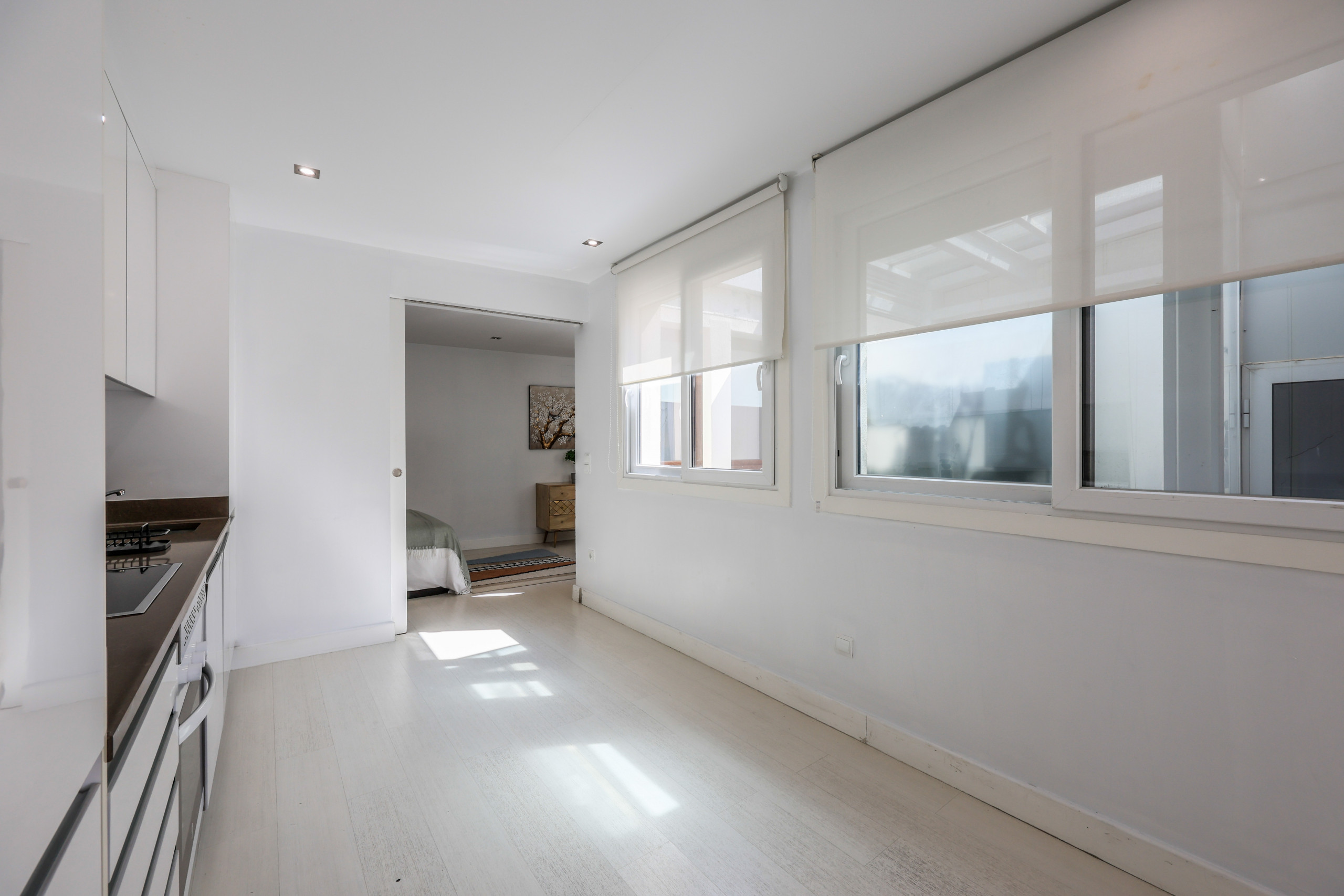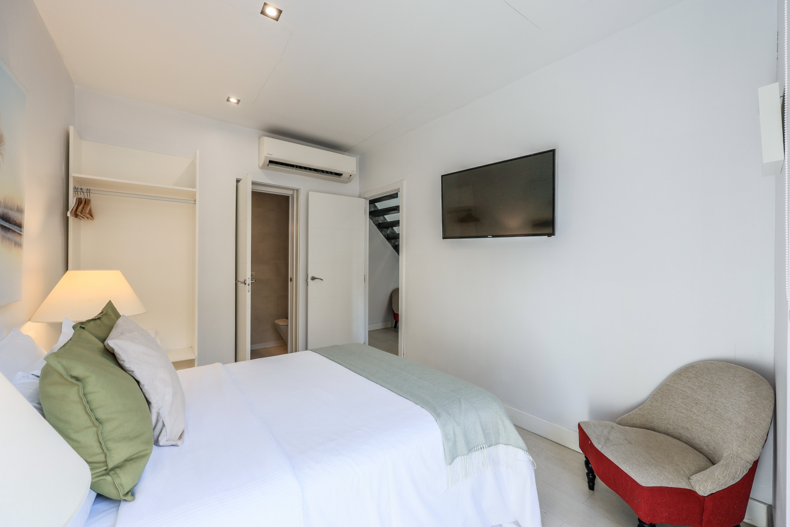 It has access from the main hall through some stairs where you will find a beautiful living room, next to a second room with a double bed (1.35cm) totally exterior and a fully equipped private bathroom.