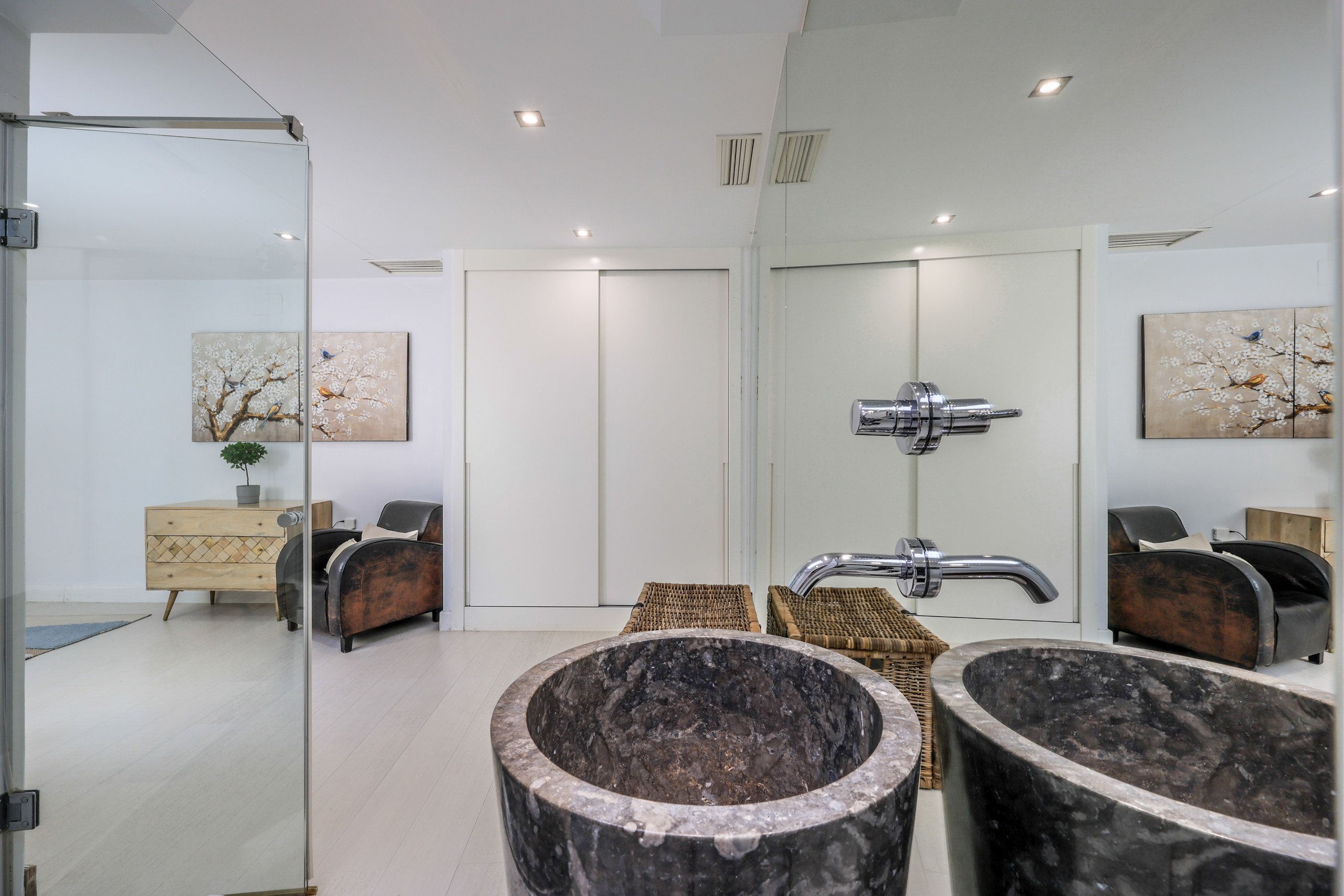 The entire duplex has adjustable air conditioning in all rooms, both bedrooms and common areas (living room, kitchen, etc).