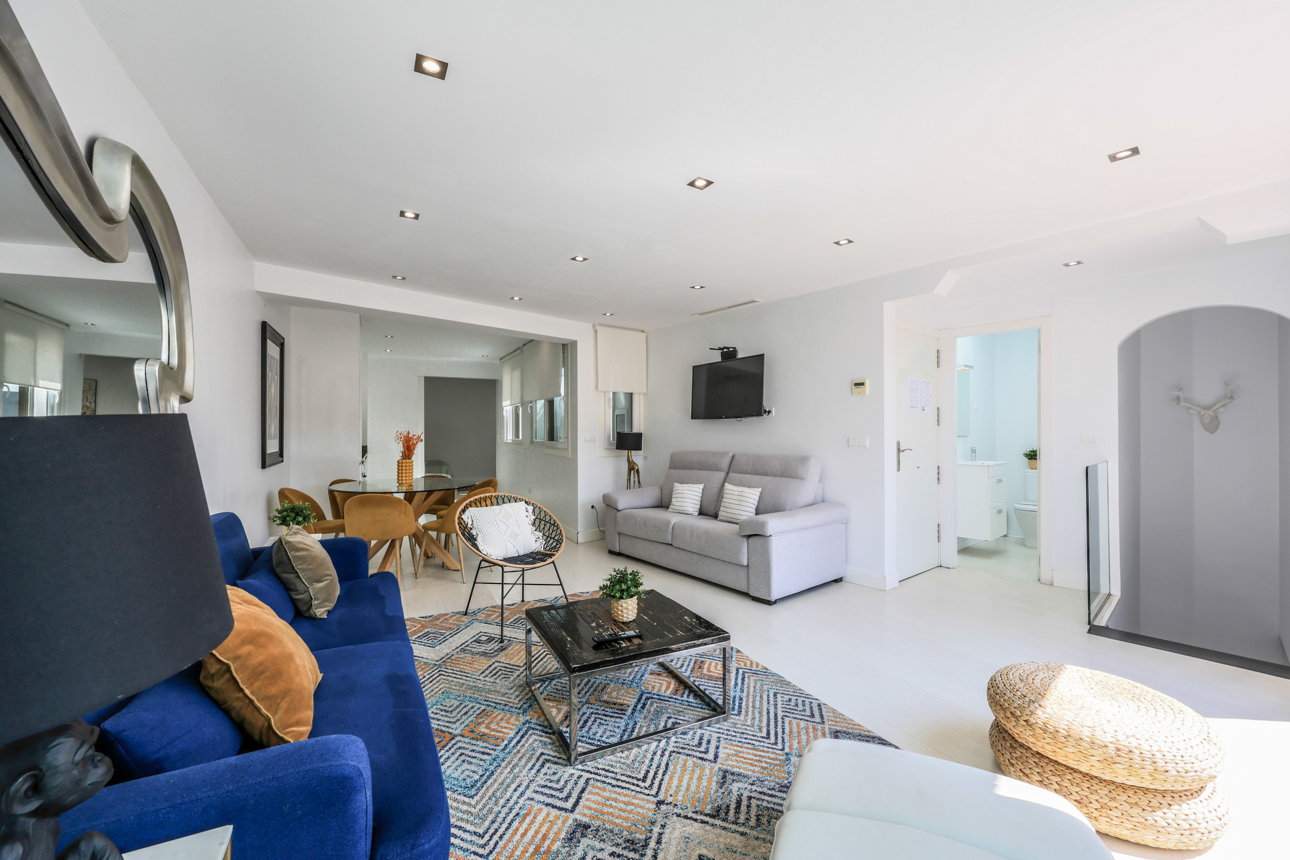 - Living room: completely renovated with designer furniture and hundreds of details. It consists of a comfortable sofa, carpet, lamps and Smart Tv and high speed internet.