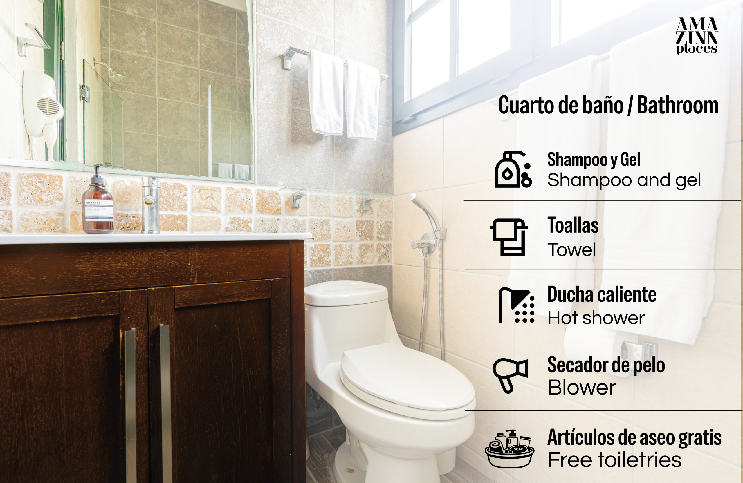 - Bathroom amenities (shampoo and shower gel).