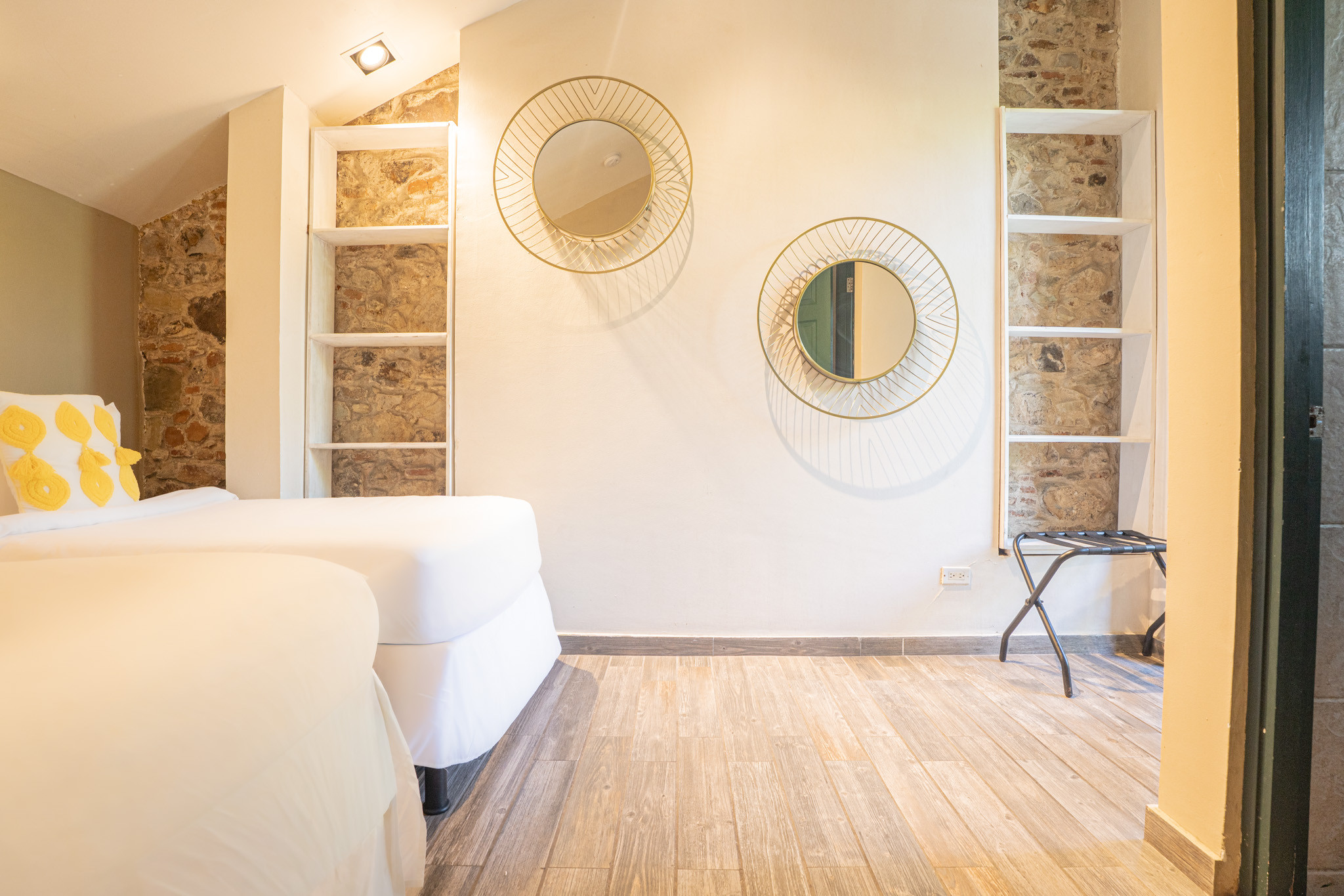 - Balcony with spectacular view of the Old Town: Equipped with round table and two woven chairs with decorative cushions, perfect for enjoying a coffee at dawn or a glass of wine at sunset. Offers a privileged view of the emblematic cathedral tower and the colonial architecture of the surroundings.