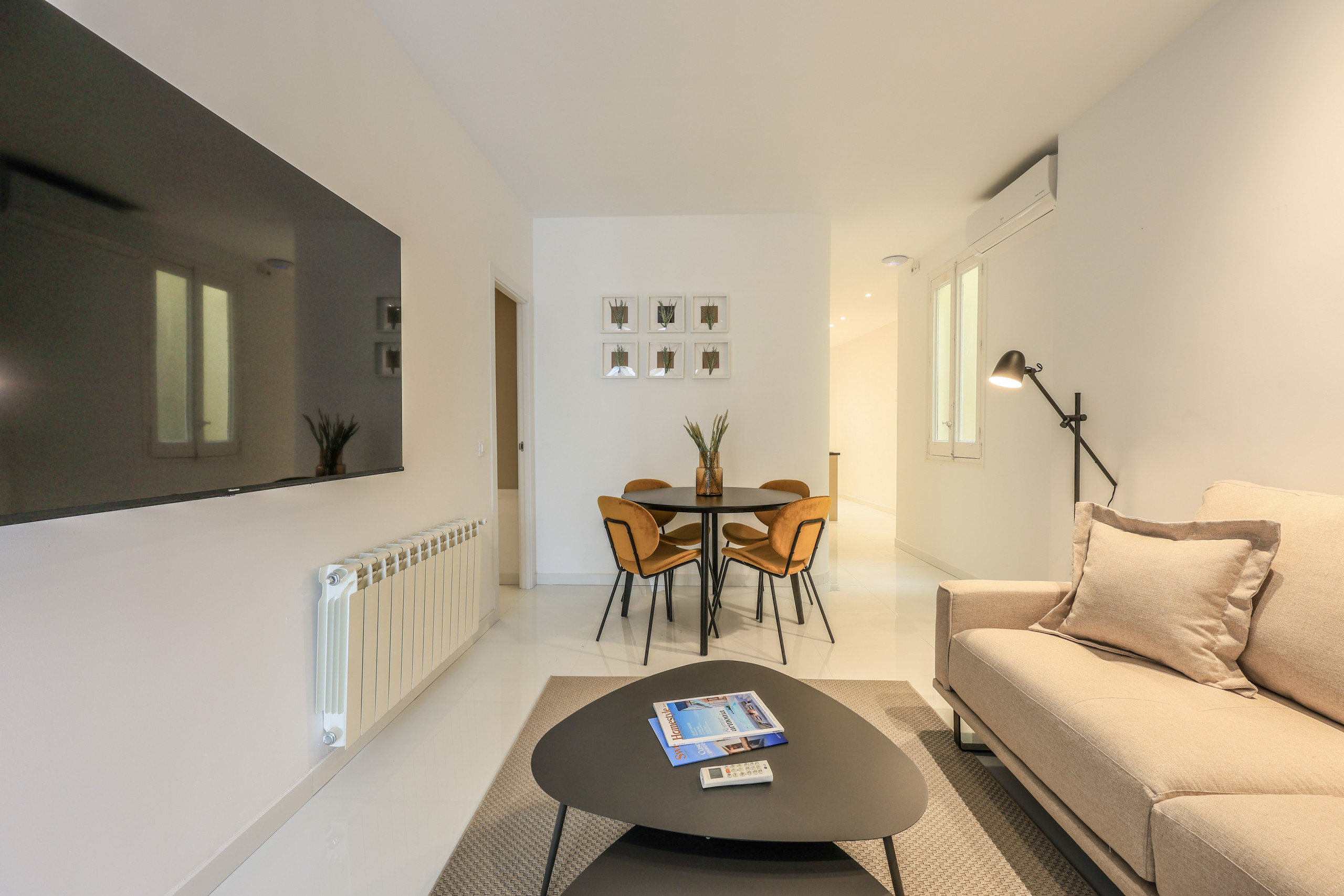 - Living room: completely renovated with designer furniture and hundreds of details. It consists of a comfortable sofa, carpet, lamps and Smart Tv and high speed internet.