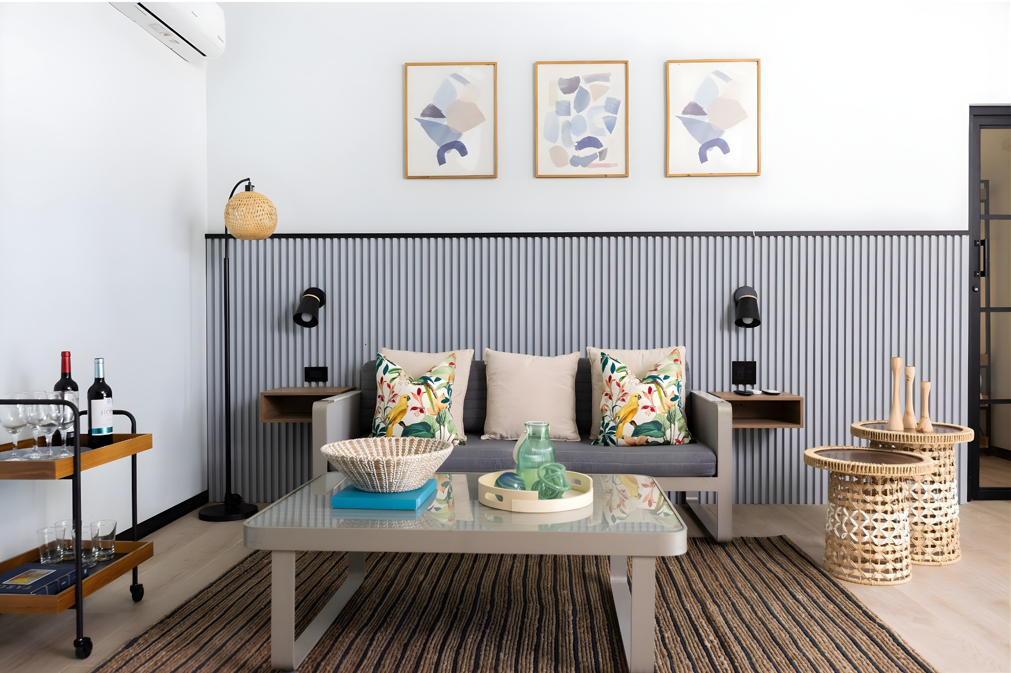 - Living room: Comfortable space with sofa and dining table. The living room does not have air conditioning or TV.