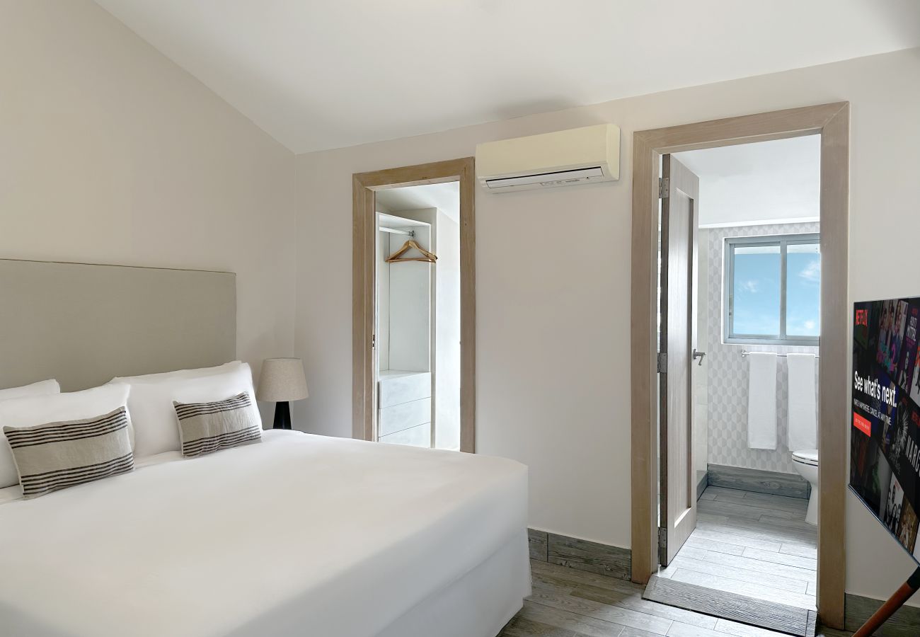 - Bedroom 4: Equipped with King Bed, Air Conditioning, Additional Pillows and Blankets, Wardrobe (built-in or furniture for storing clothes), Heating (Heat Pump), Smoke Detector, Carbon Monoxide Detector, Clothing Storage Space, Hangers, Opaque Blinds or Curtains, Bedding, Window Locks, Smart TV.