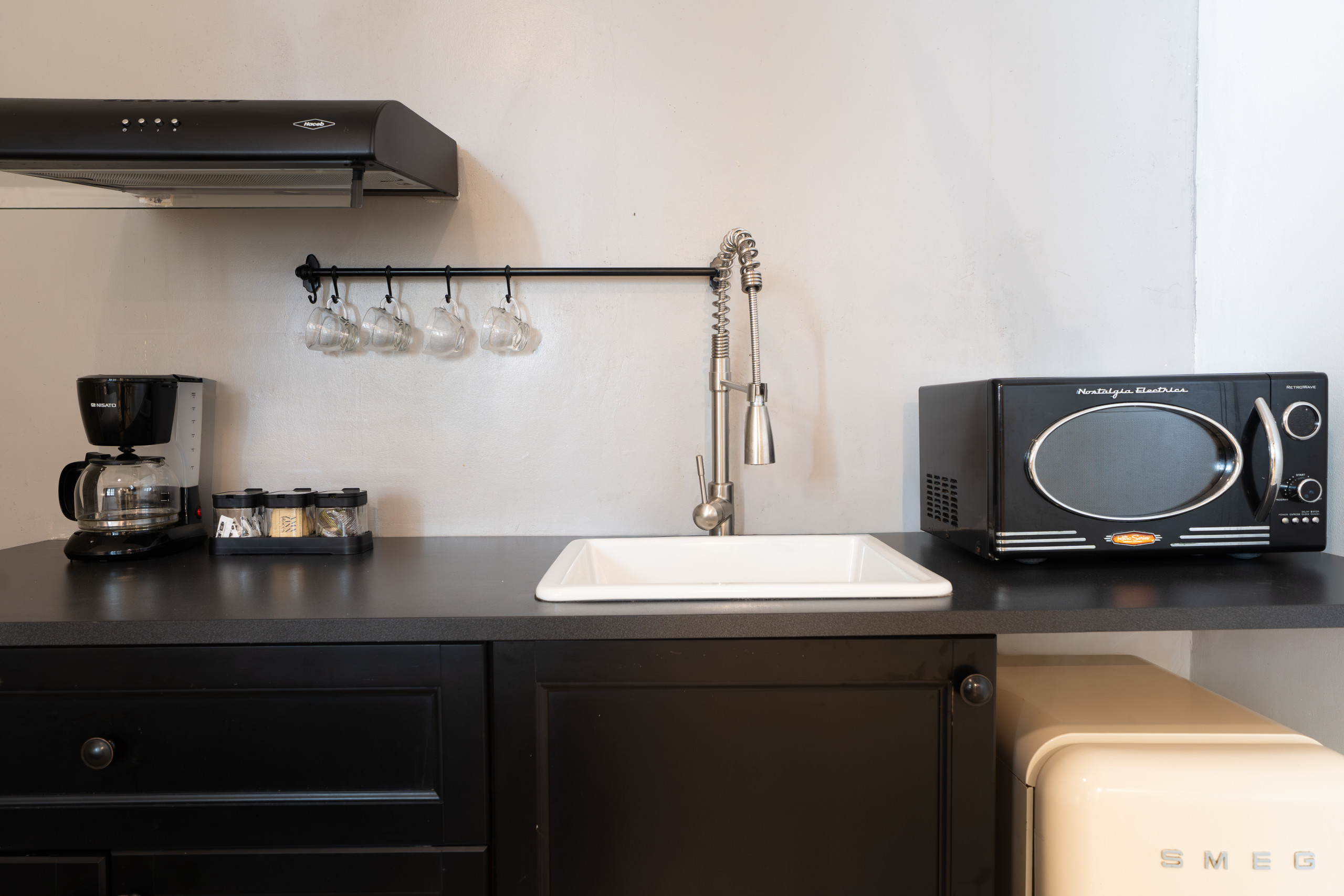 - Functional Kitchenette: Practical space for simple preparations, equipped with coffee maker, microwave, mini fridge, kettle, blender, toaster, wine glasses, plates, cutlery and basic utensils. Includes coffee, salt, sugar, tea and oil.