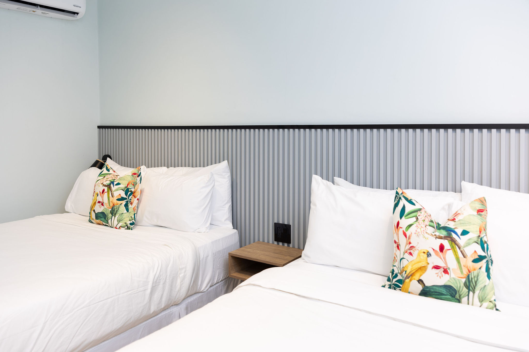 - Bedroom Area: Equipped with 2 Queen Beds, Air Conditioning, Additional Pillows and Blankets, Wardrobe, Coffee Maker, Coffee, Heating (Heat Pump), Smoke Detector, Carbon Monoxide Detector, Desk and Chair, Clothing Storage Space, Kettle, Hangers, Blinds, Iron, Bedding, Window Locks, Clothes Drying Rack, TV, Ceiling Fan.