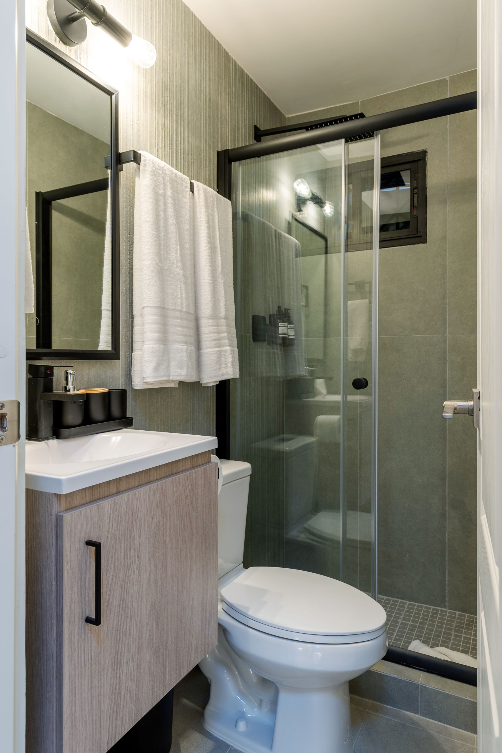 - Bedroom 2: king bed, en-suite bathroom with shower and toilet, air conditioning, clothing storage space, desk and chair, additional pillows and blankets, coffee maker, coffee and kettle.